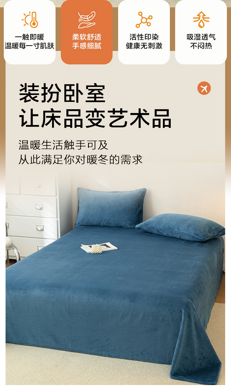 (总)眠博士 2025新款简约牛奶绒纯色单床单-场景二