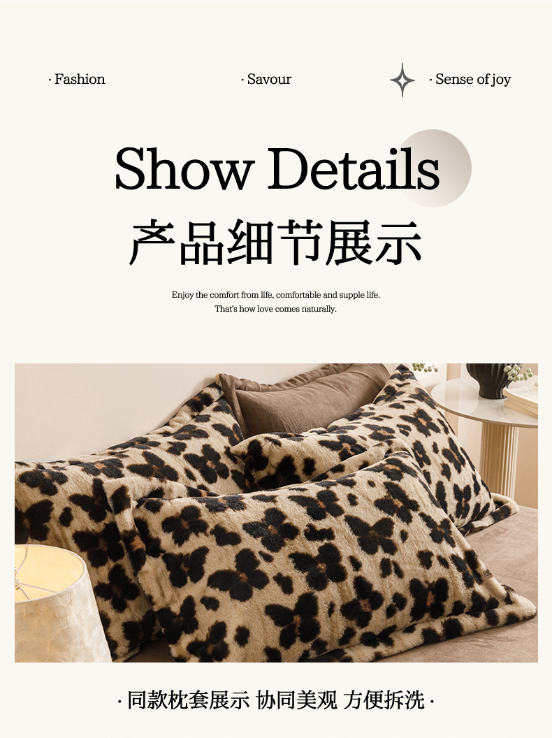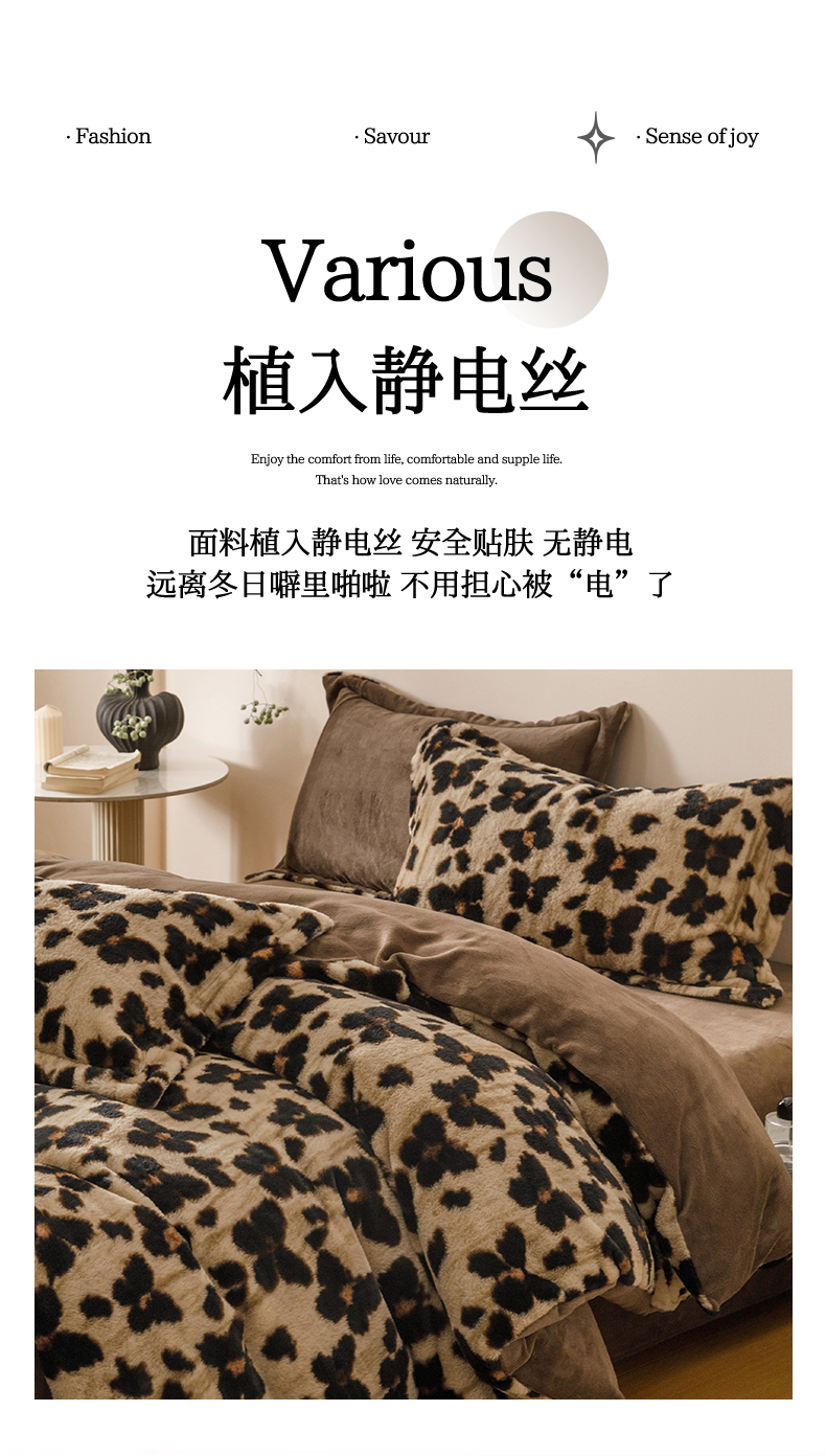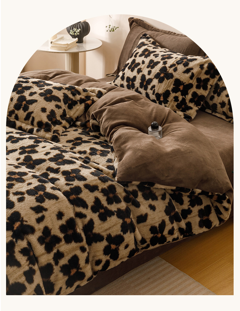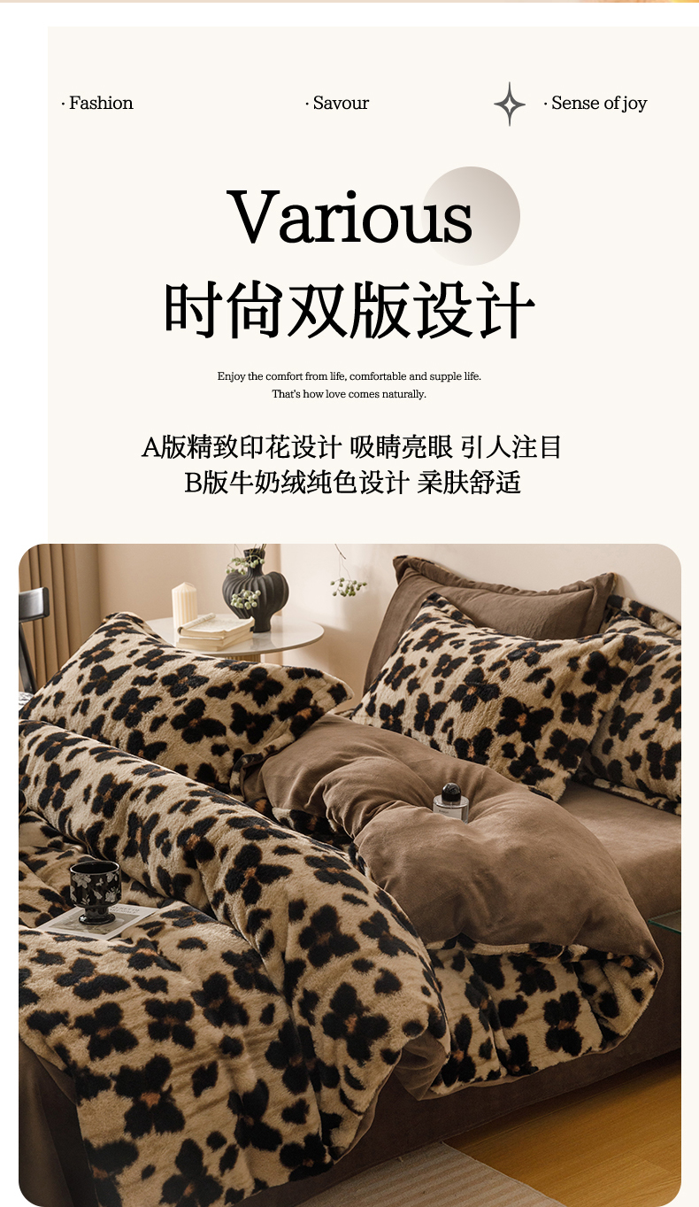 商品名称:艾莱家纺 2025新款A类美拉德系兔绒超柔保暖四件套 蝶豹-咖棕