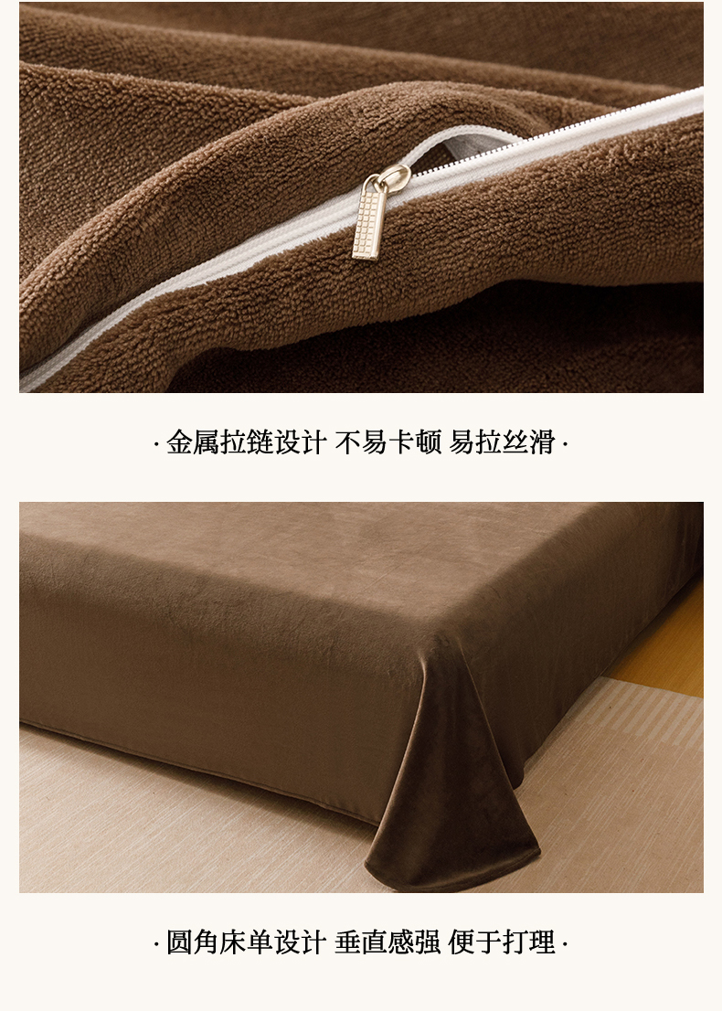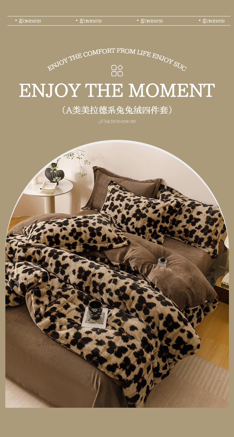 艾莱家纺 2025新款A类美拉德系兔绒超柔保暖四件套 蝶豹-咖棕