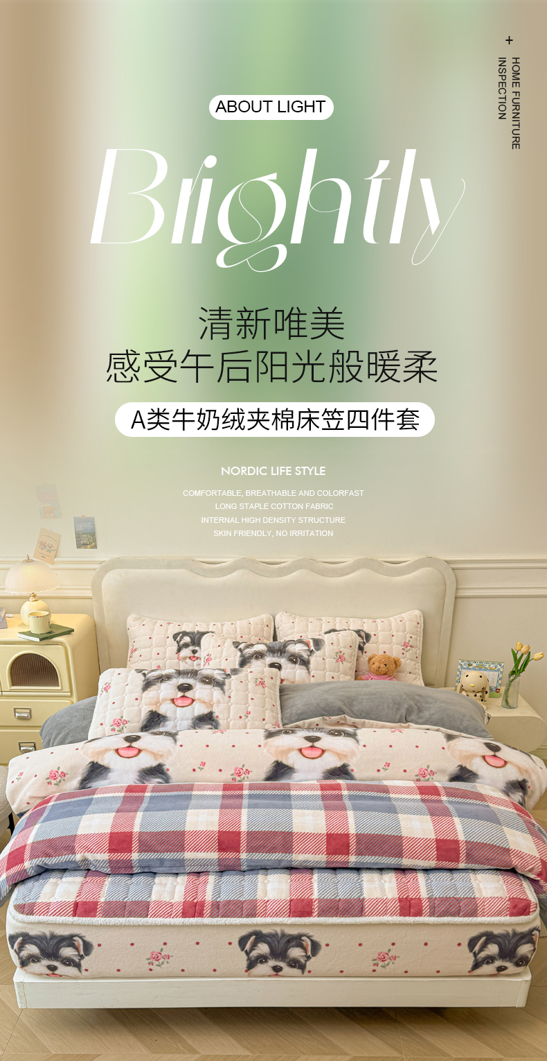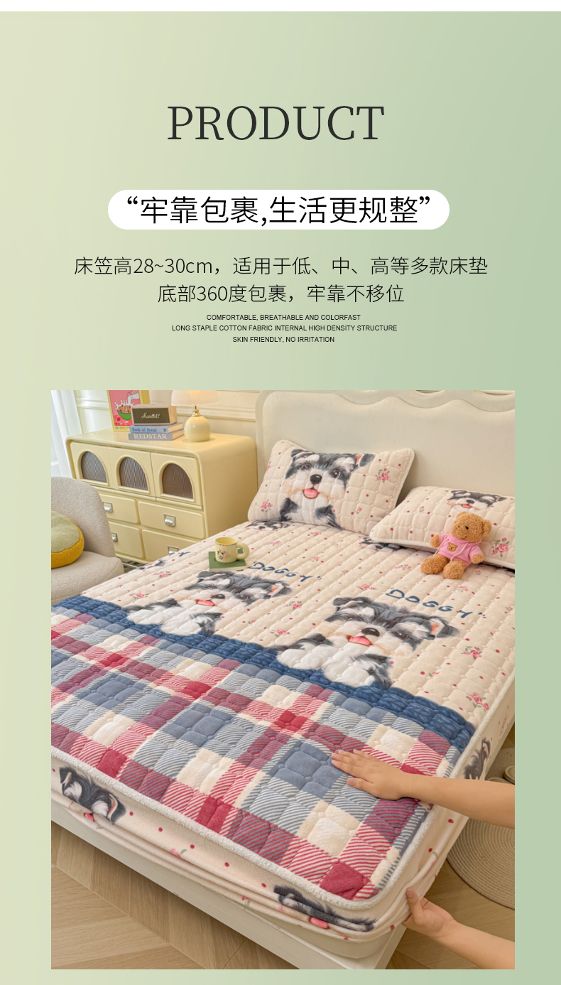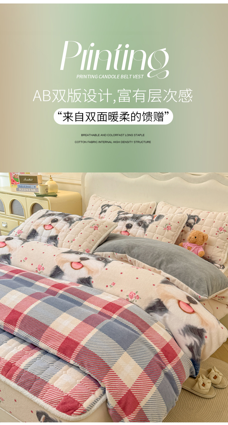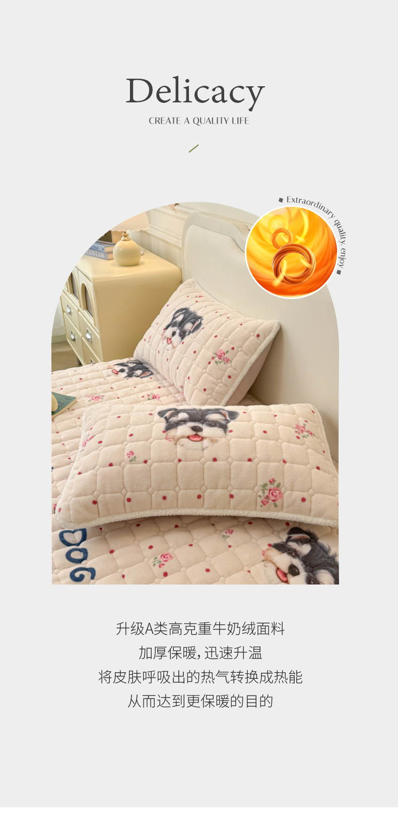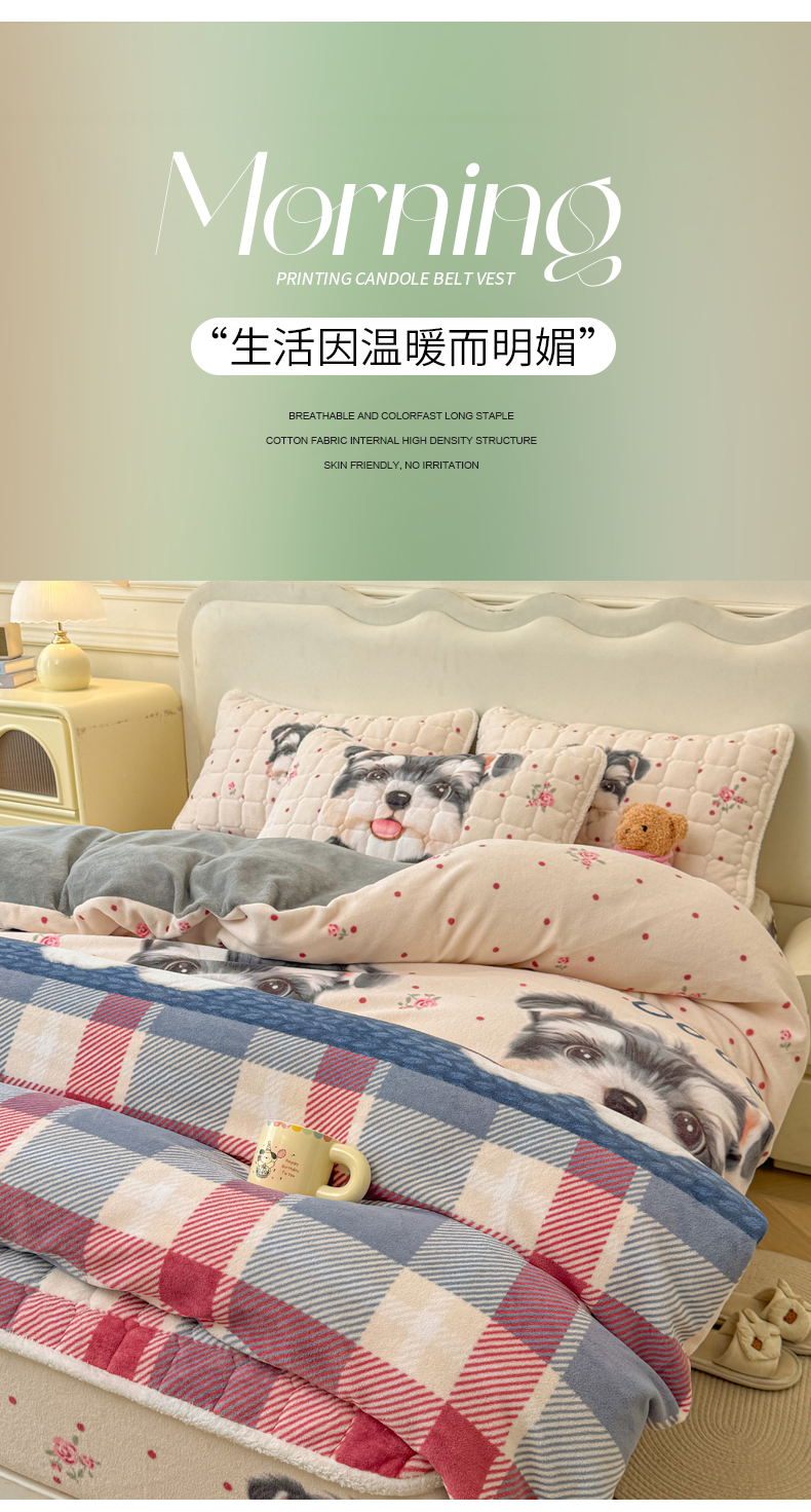 商品名称:LIFE.丽芙 2025秋冬新款A类牛奶绒加厚夹棉床笠+被套组合四件套 修狗