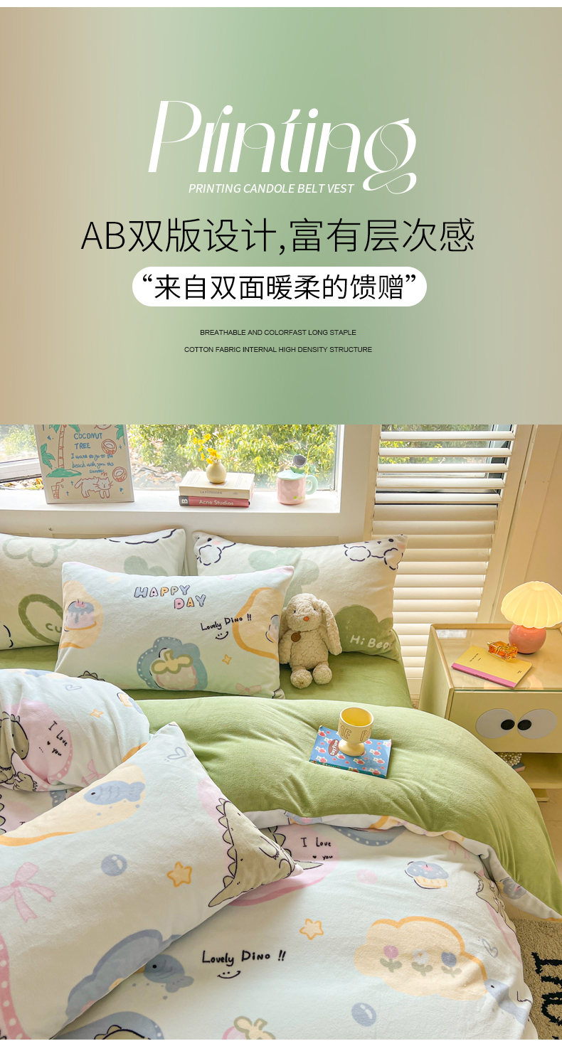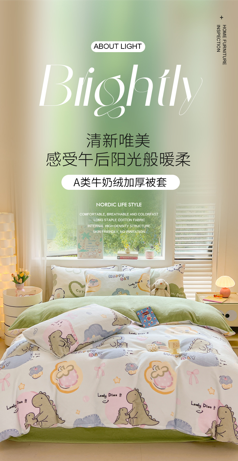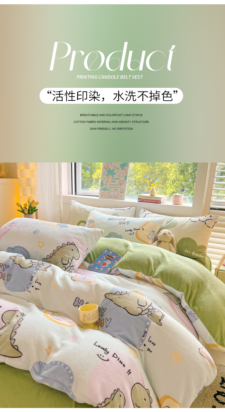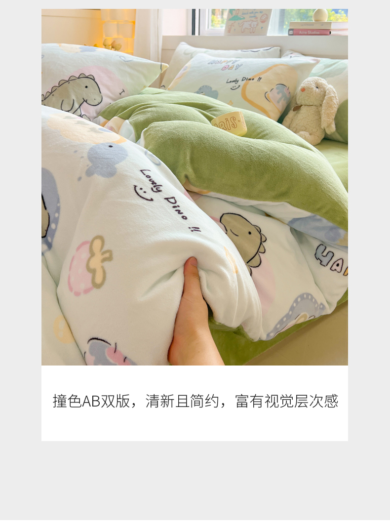 商品名称:LIFE.丽芙 2025秋冬新款A类牛奶绒加厚保暖单被套 恐龙宝宝
