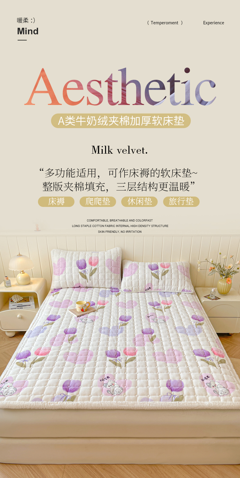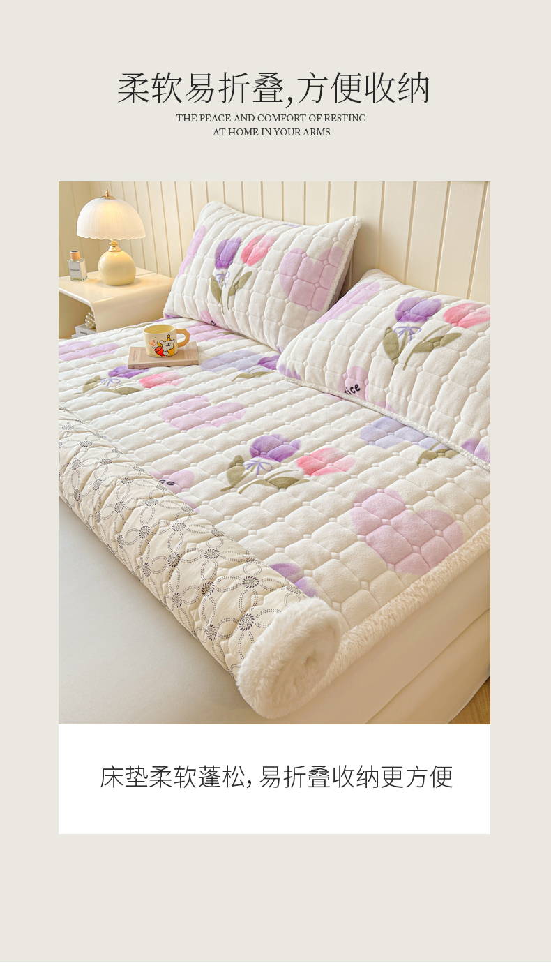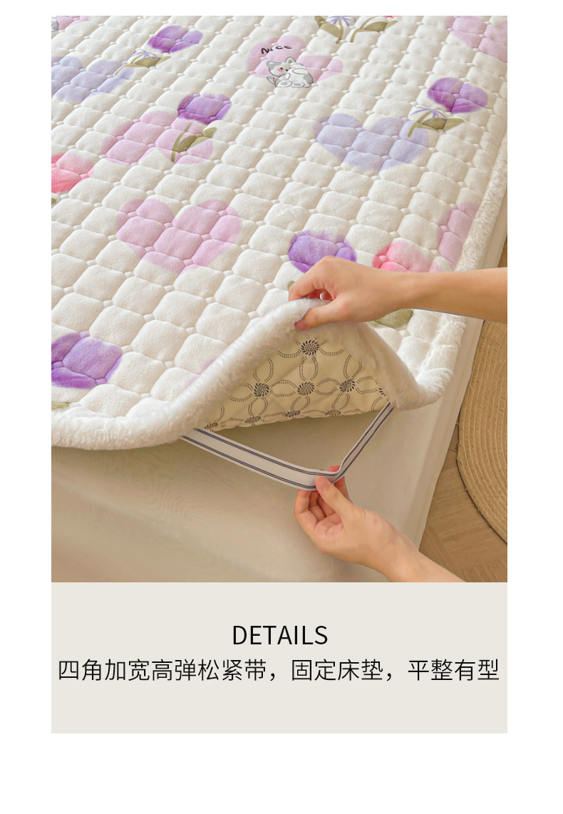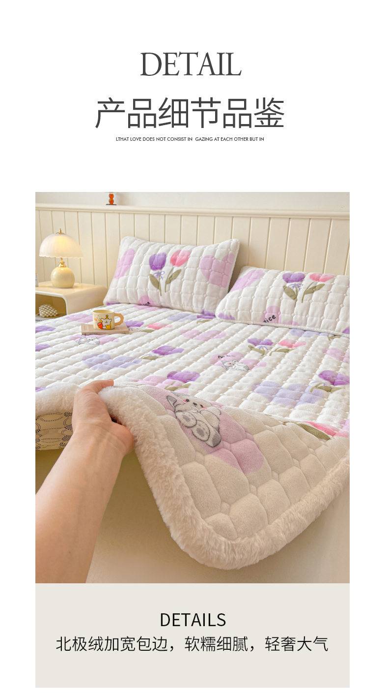 • 91家纺网 家纺一手货源 找家纺 LIFE.丽芙 2025秋冬新款牛奶绒加厚夹棉床垫床护垫单件印花卡通小清新床褥床垫子三件套 花语