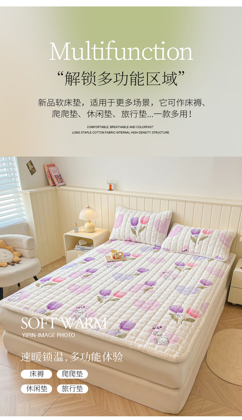 当前位置: 91家纺网 > 商品网购 > 床垫/床褥 > LIFE.丽芙 2025秋冬新款牛奶绒加厚夹棉床垫床护垫单件印花卡通小清新床褥床垫子三件套 花语