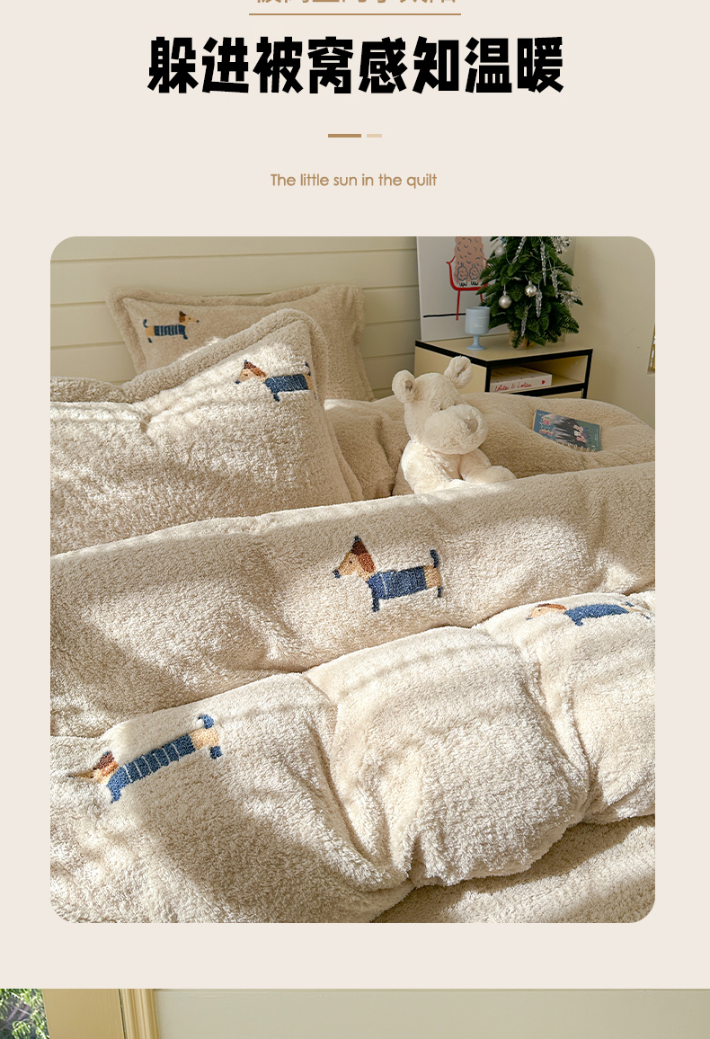 (总)萝莉家纺 2025新款加厚泰迪绒毛巾绣四件套,腊肠狗蓝,可爱狗米白,可爱狗深米,礼帽狗,圣诞树黄,小免蓝,小木马少女粉,小木马水兰,小企鹅豆沙粉,小企鹅米白,小兔茶粉,小熊奶白,熊豆绿,熊猫白,熊猫紫