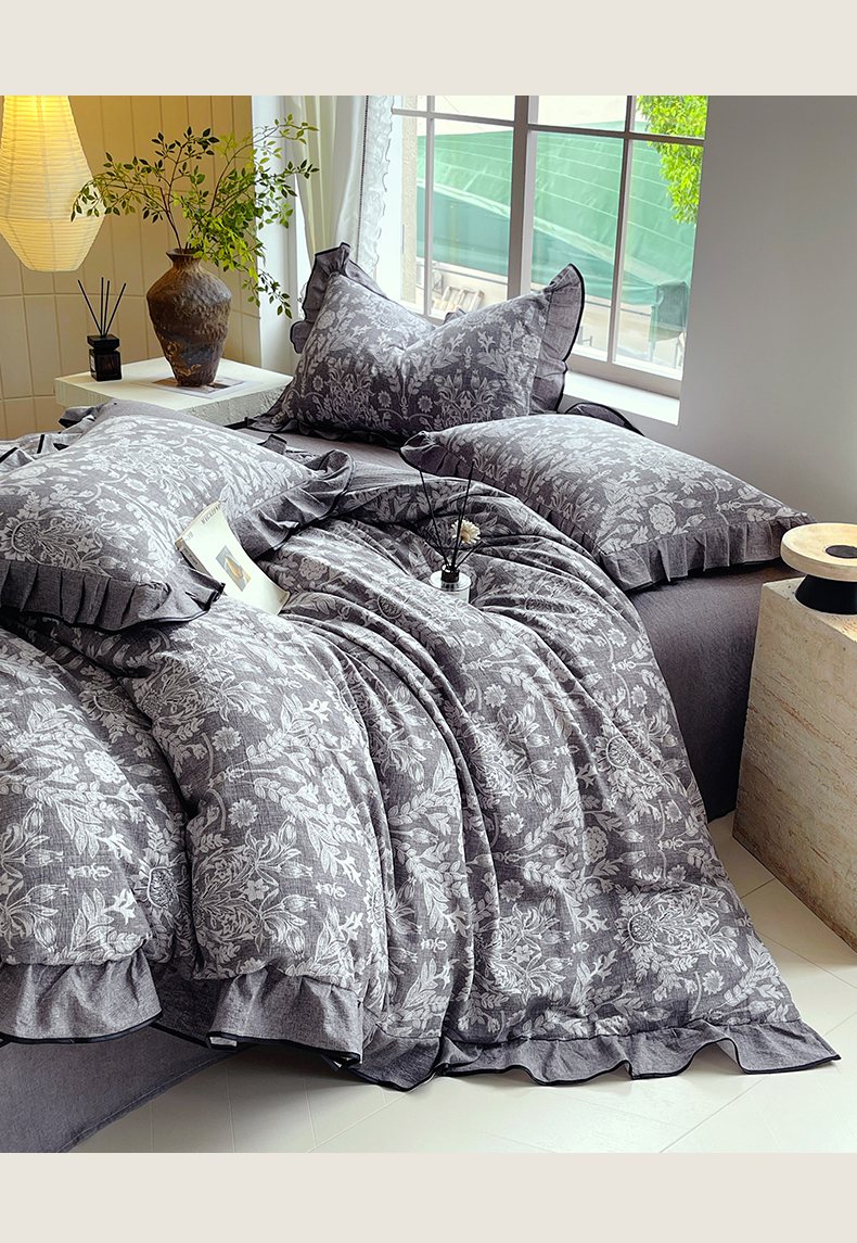 梵克保罗 2025秋冬新品10A抗菌原麻荷叶边床单款三件套四件套 精致豹纹