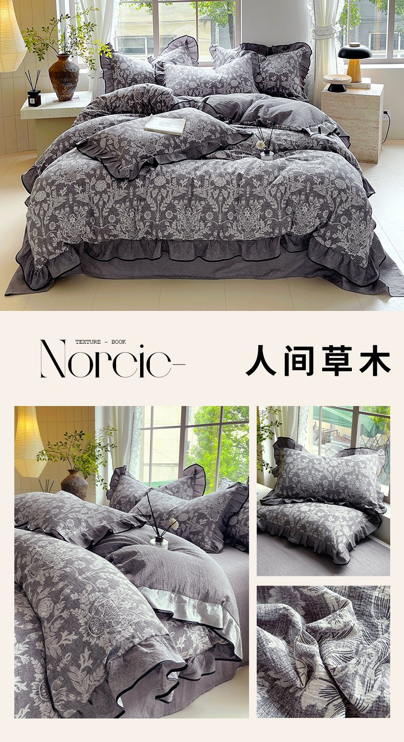 商品名称:梵克保罗 2025秋冬新品10A抗菌原麻荷叶边床单款三件套四件套 精致豹纹