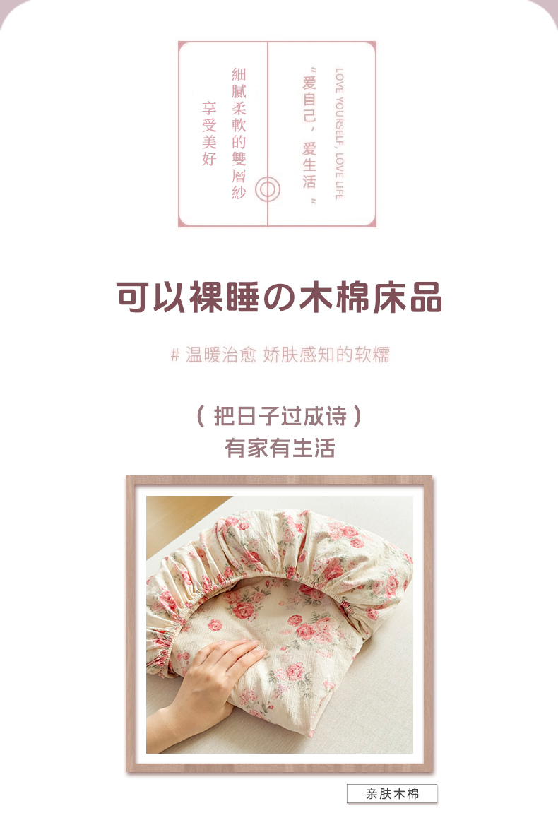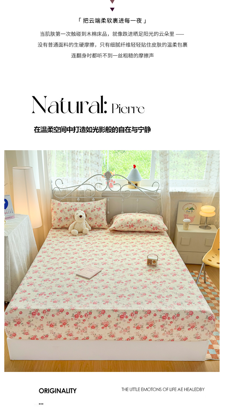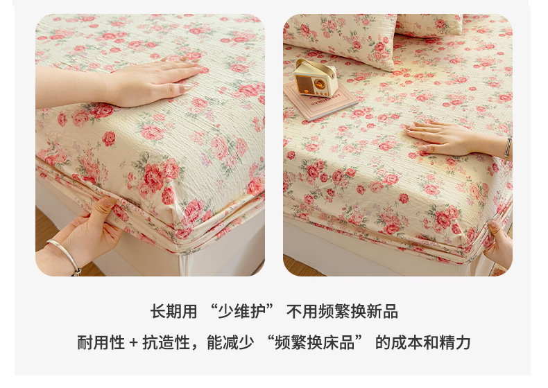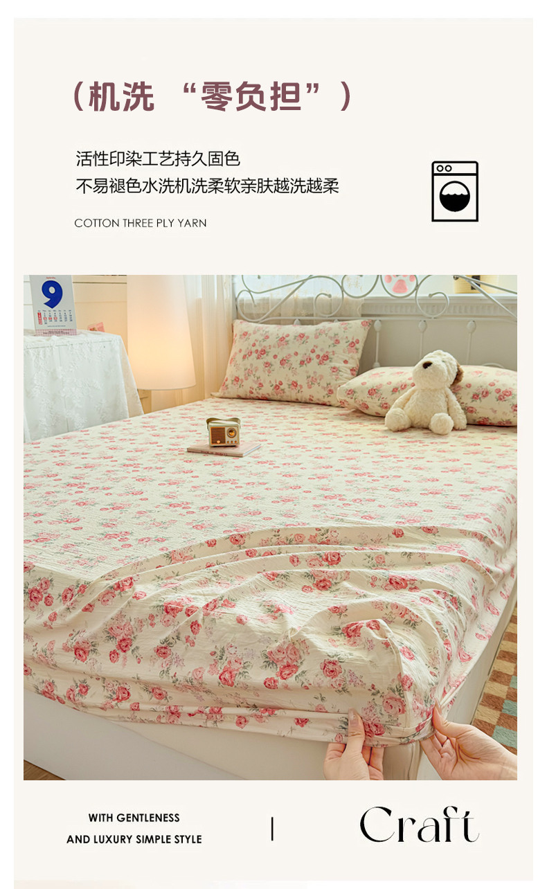 爱彼家纺 2025新款水洗水洗棉印花床笠单品床笠床笠三件套风格二 柔粉蔷薇绘