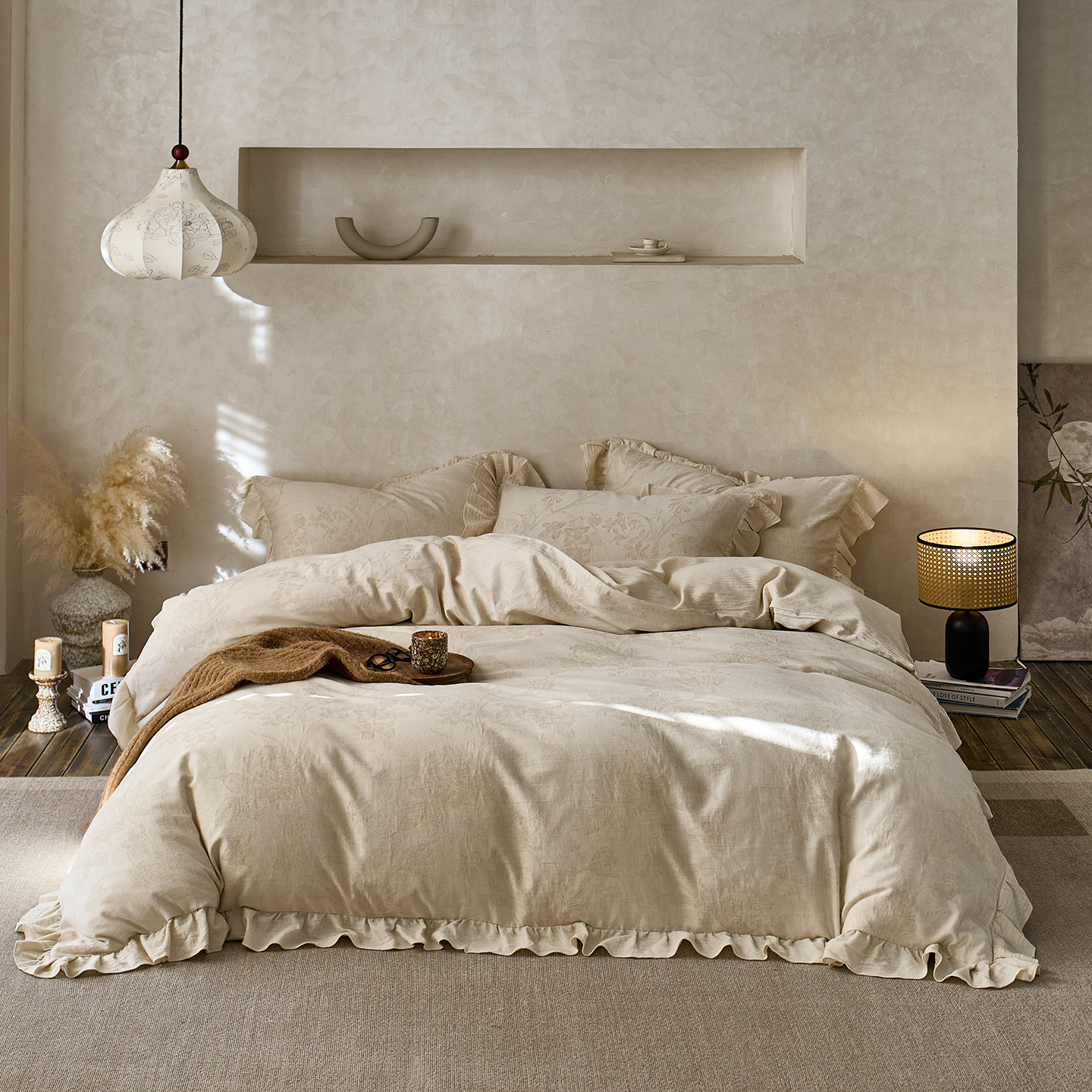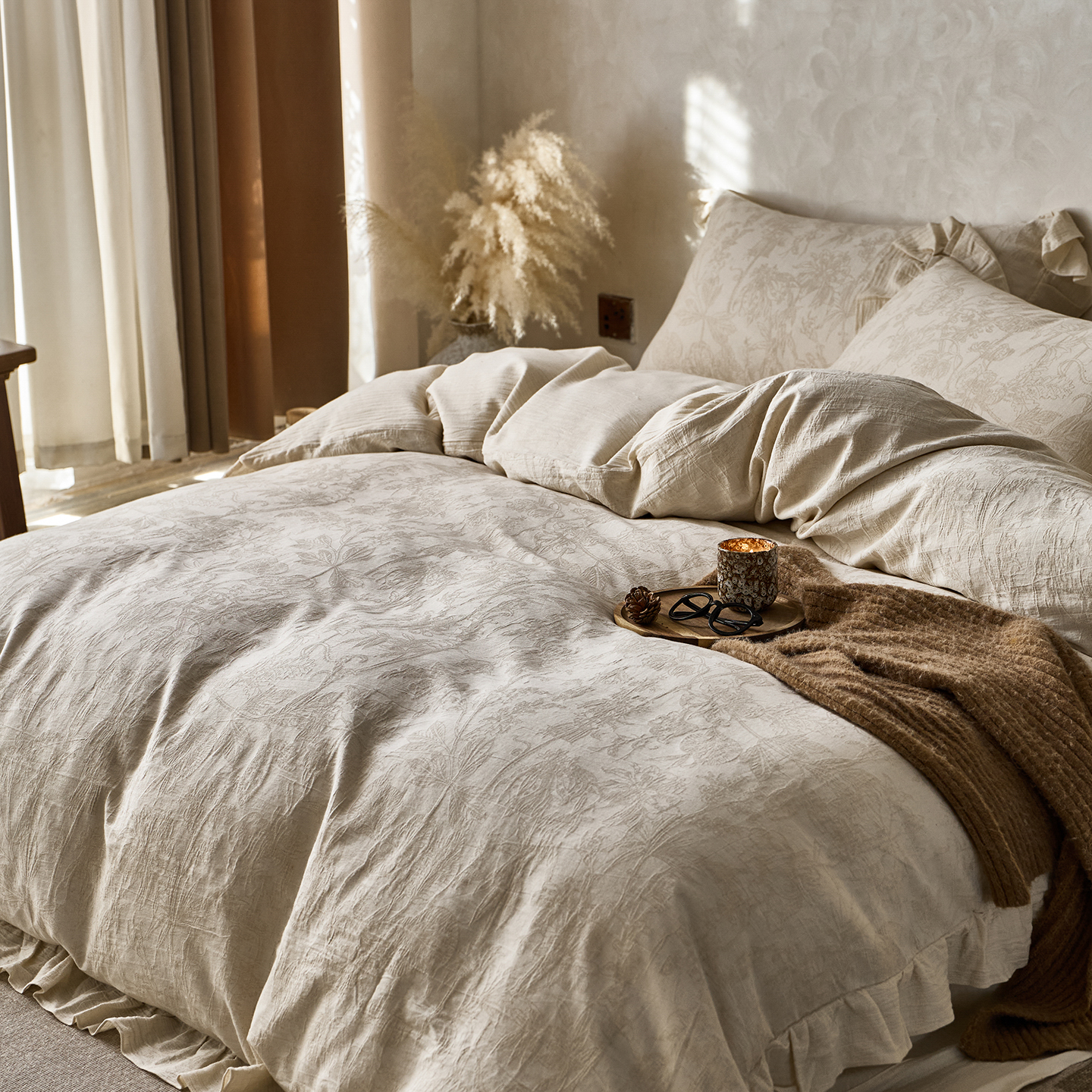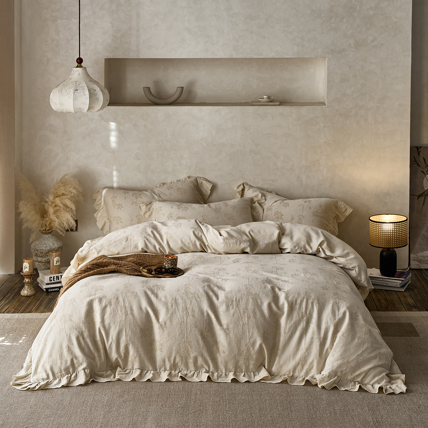 当前位置: 91家纺网 > 商品网购 > 床品套件 > 四件套 > 全棉普通四件套 > 梵克保罗 2025秋冬新品全棉亚麻提花法式花边款棉麻四件套 锦时