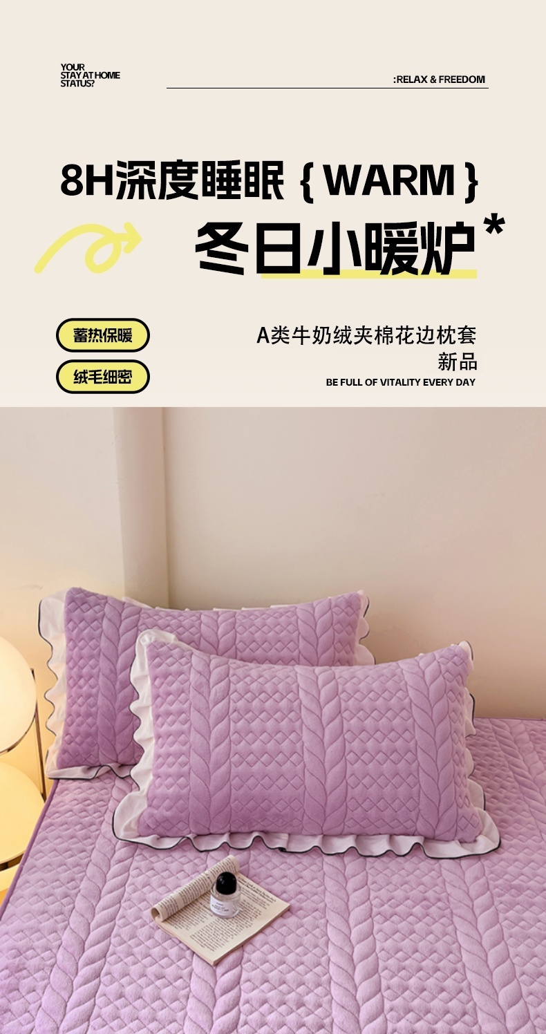 商品名称:梦舒羽 2025新款牛奶绒花边夹棉枕套单人宿舍枕芯套枕头套一对-轻奢 花边轻奢款-梦幻紫
