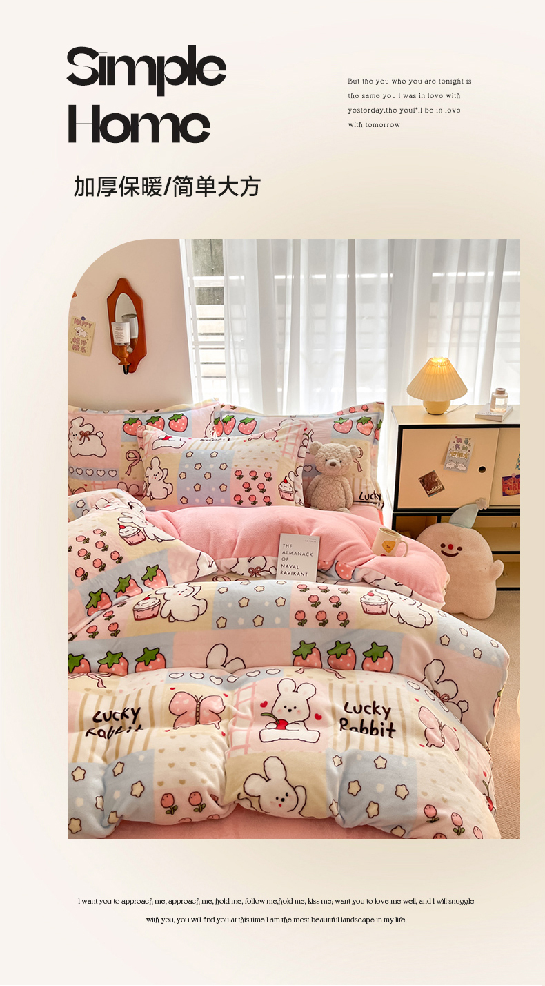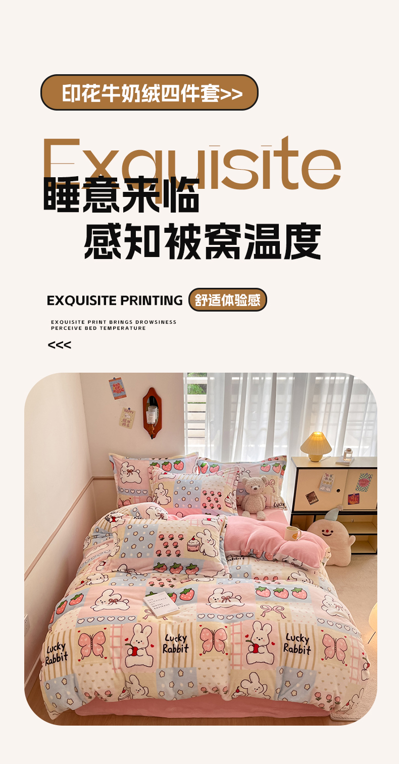 当前位置: 91家纺网 > 商品网购 > 床品套件 > 四件套 > 牛奶绒四件套 > 寻米 2025新款高克重加厚保暖牛奶绒四件套-第二批 幸运兔