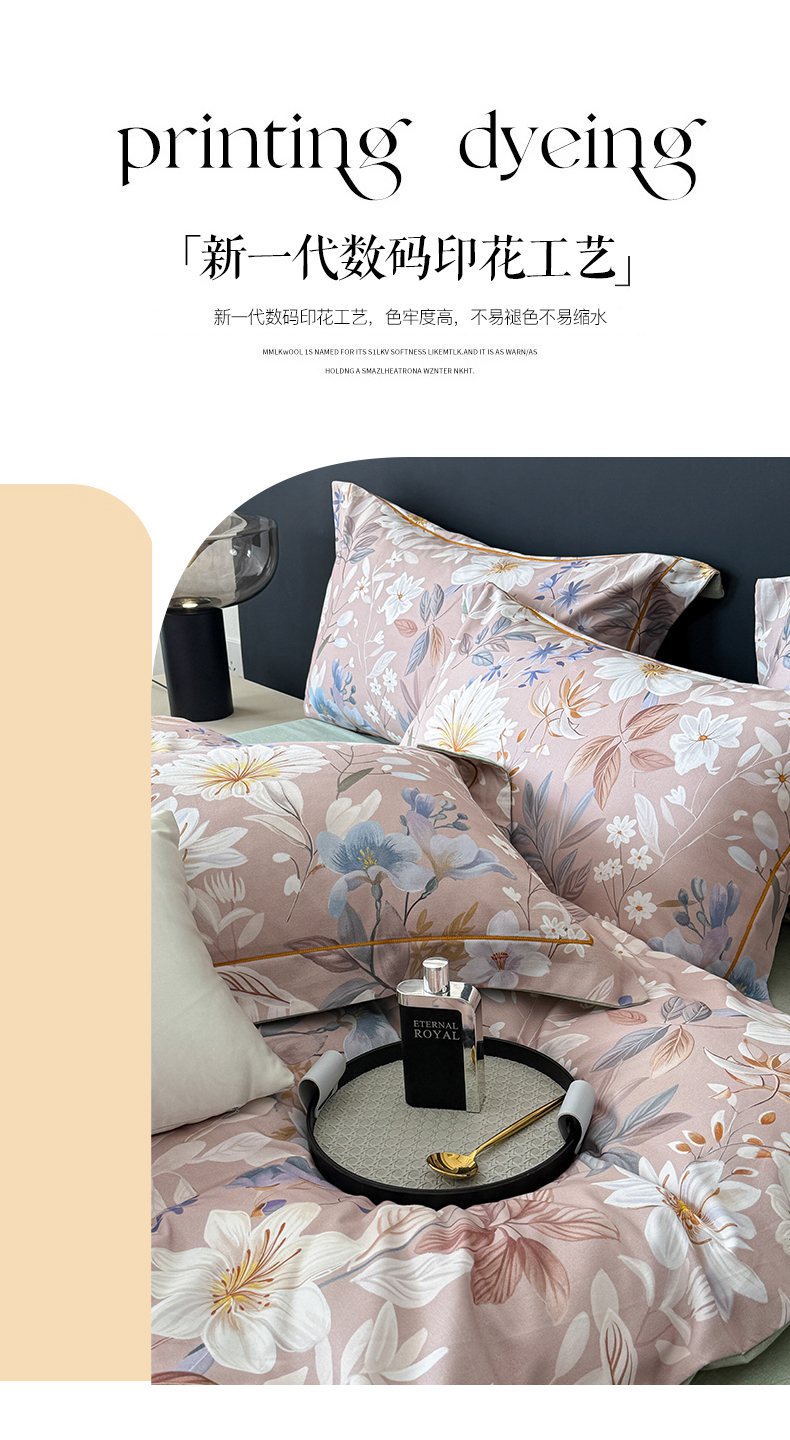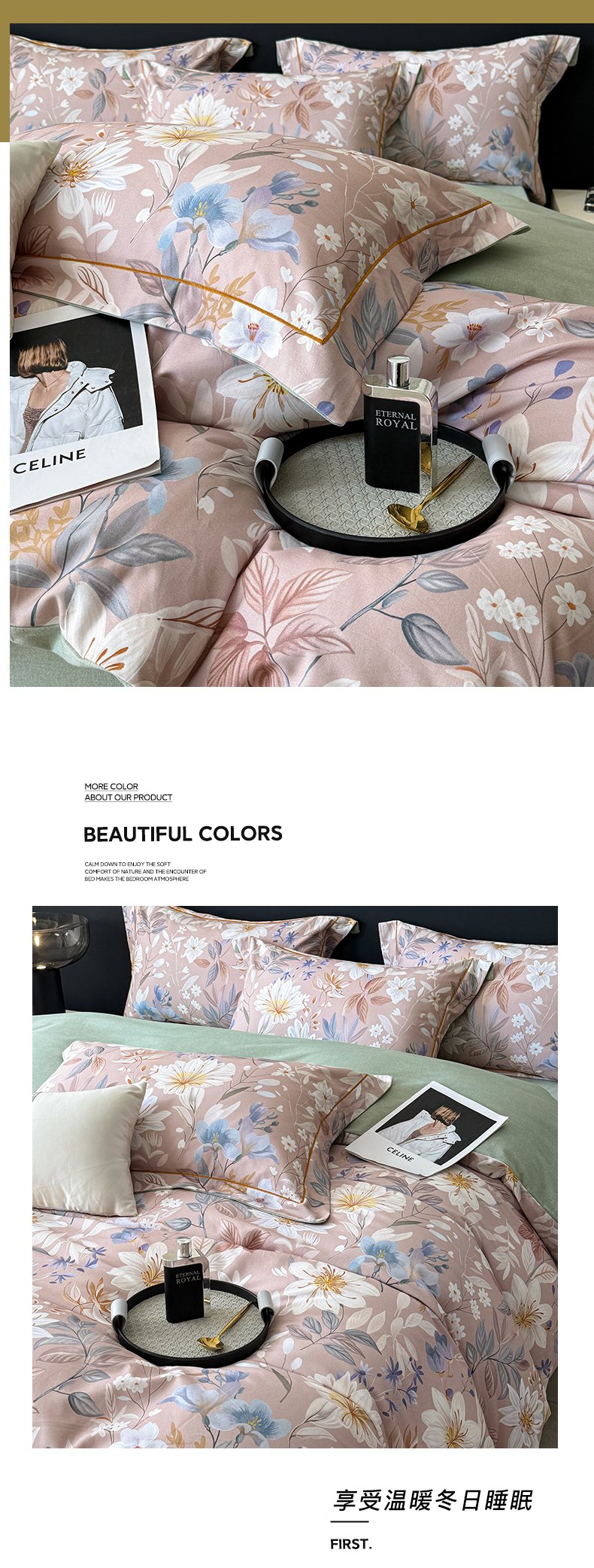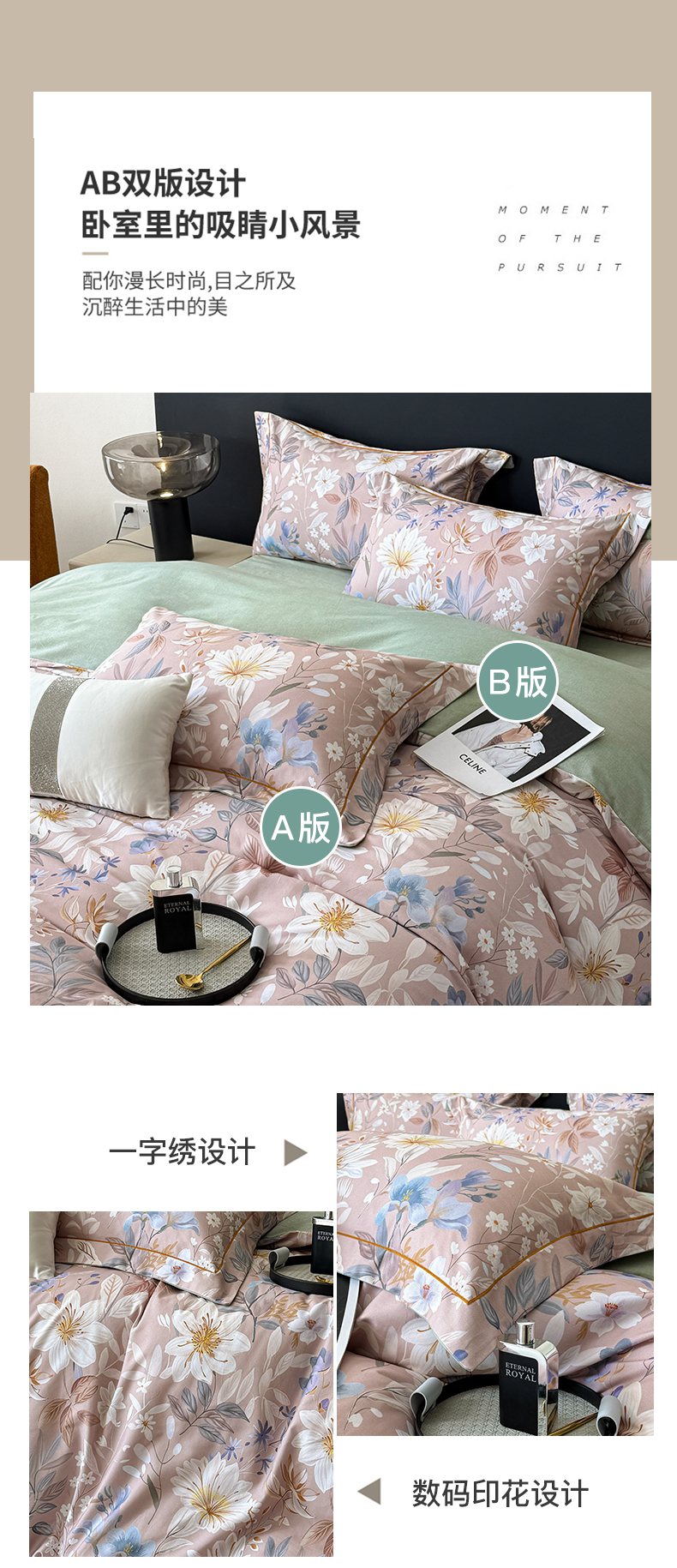 当前位置: 91家纺网 > 商品网购 > 床品套件 > 四件套 > 普通磨毛四件套 > 梵克保罗 2025秋冬新款数码印花全棉磨毛单被套三件套四件套系列 亭语花间