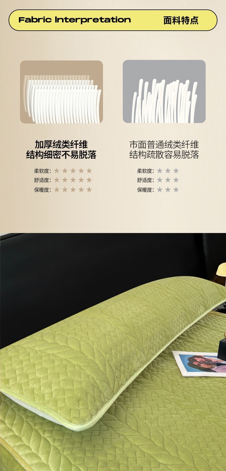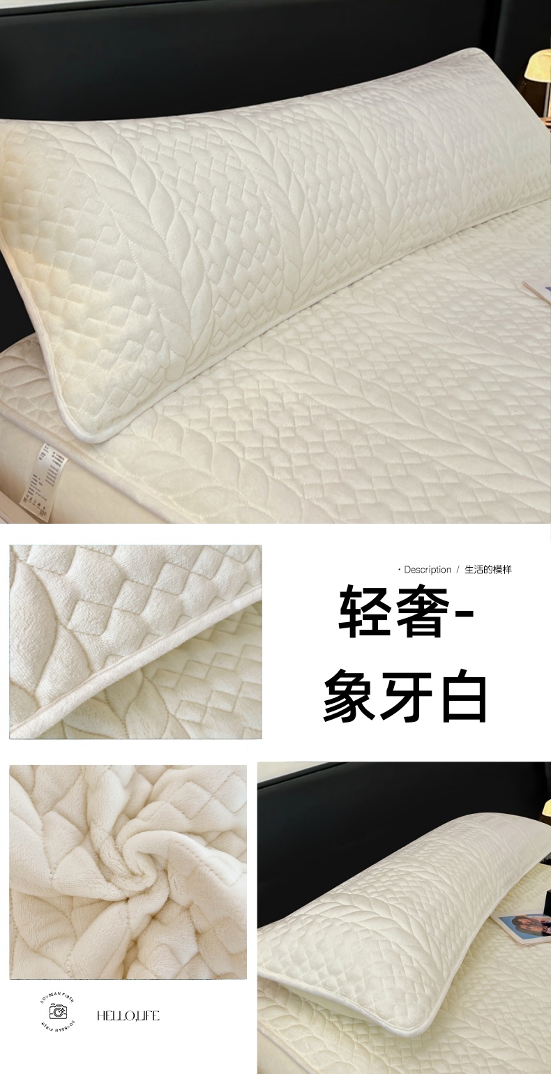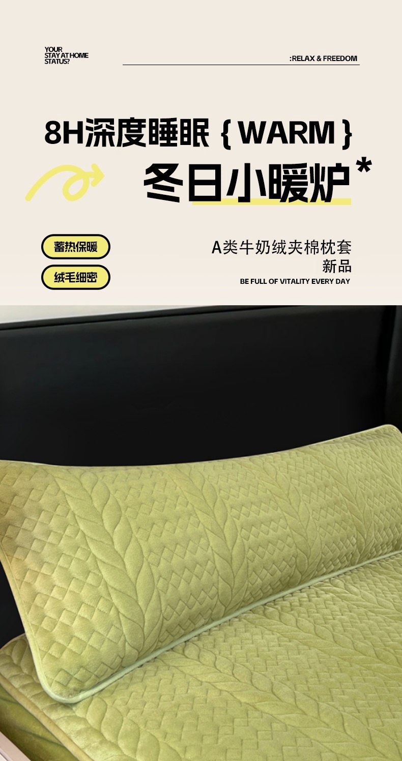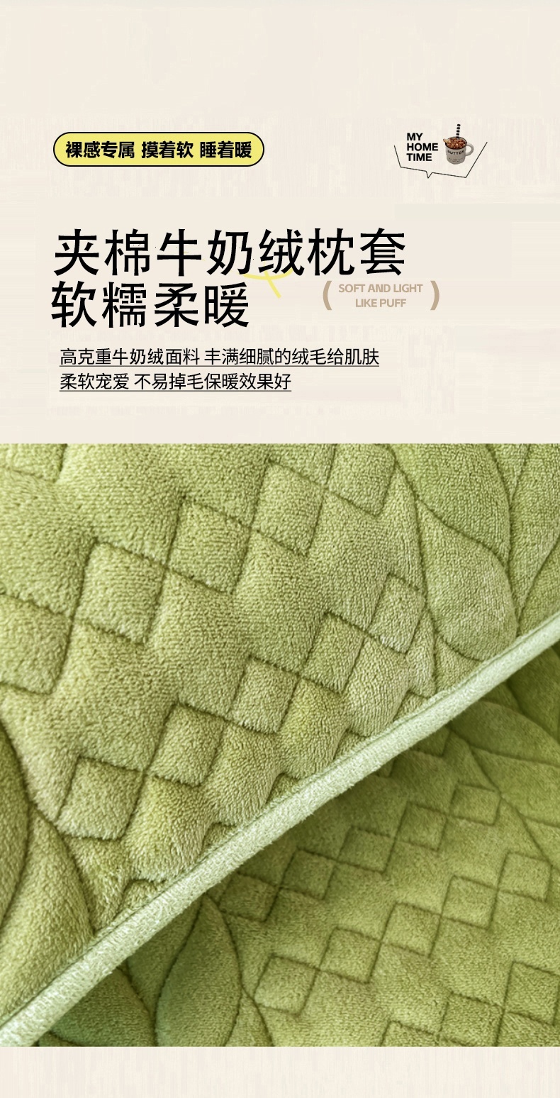 商品名称:梦舒羽 2025新款牛奶绒夹棉枕套情侣双人加长枕芯套枕头套-轻奢 轻奢包边款-果绿