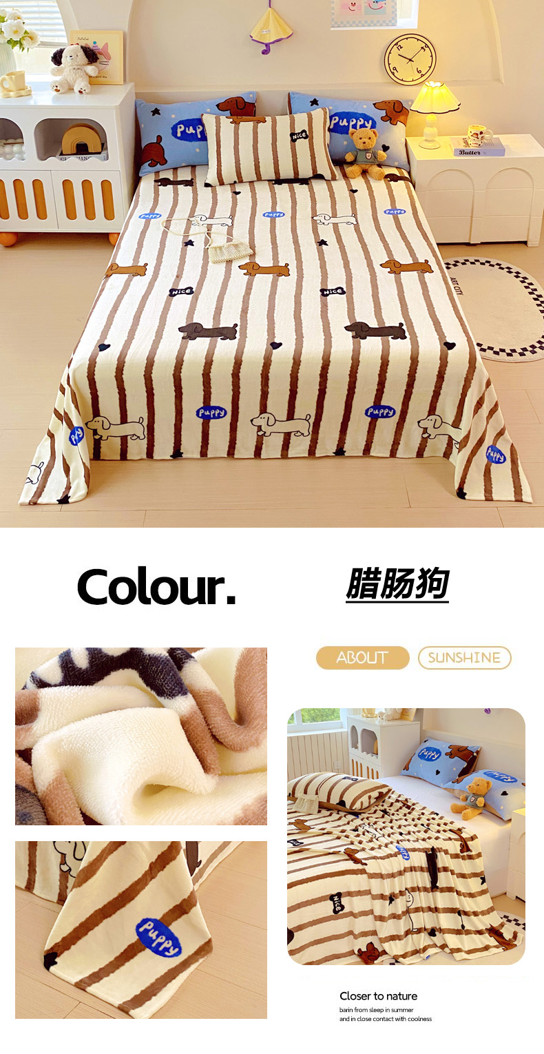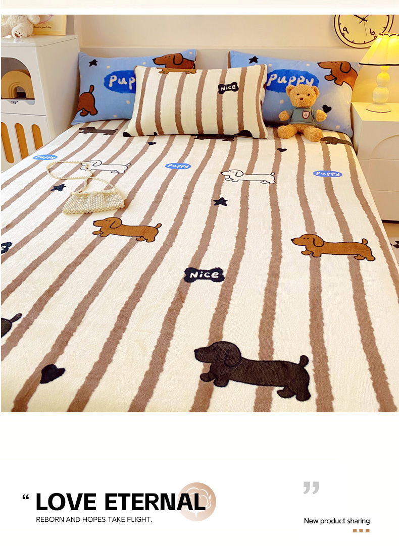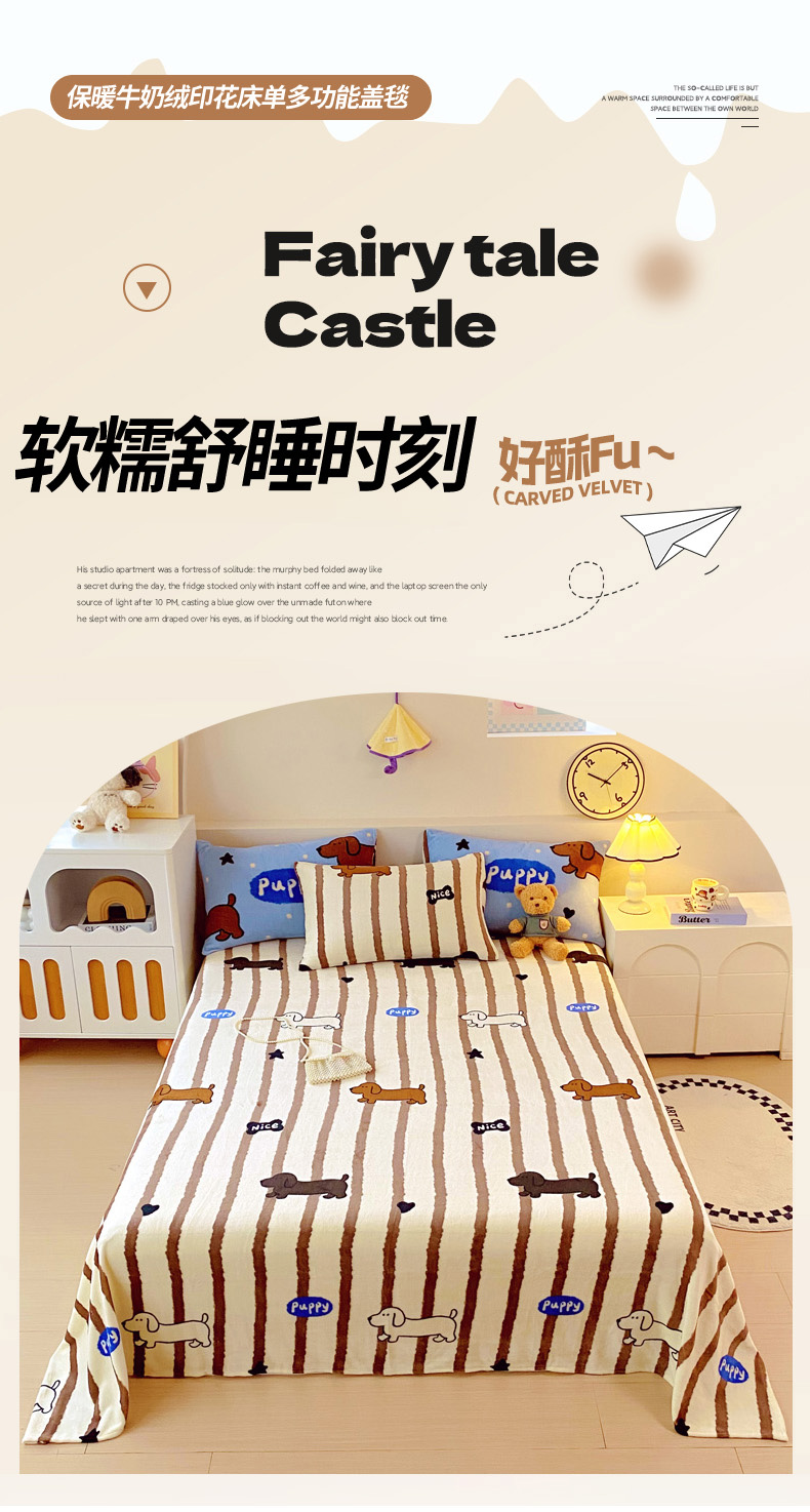 葡萄家 2025年新款牛奶绒印花单床单萌系卡通床单款 腊肠狗