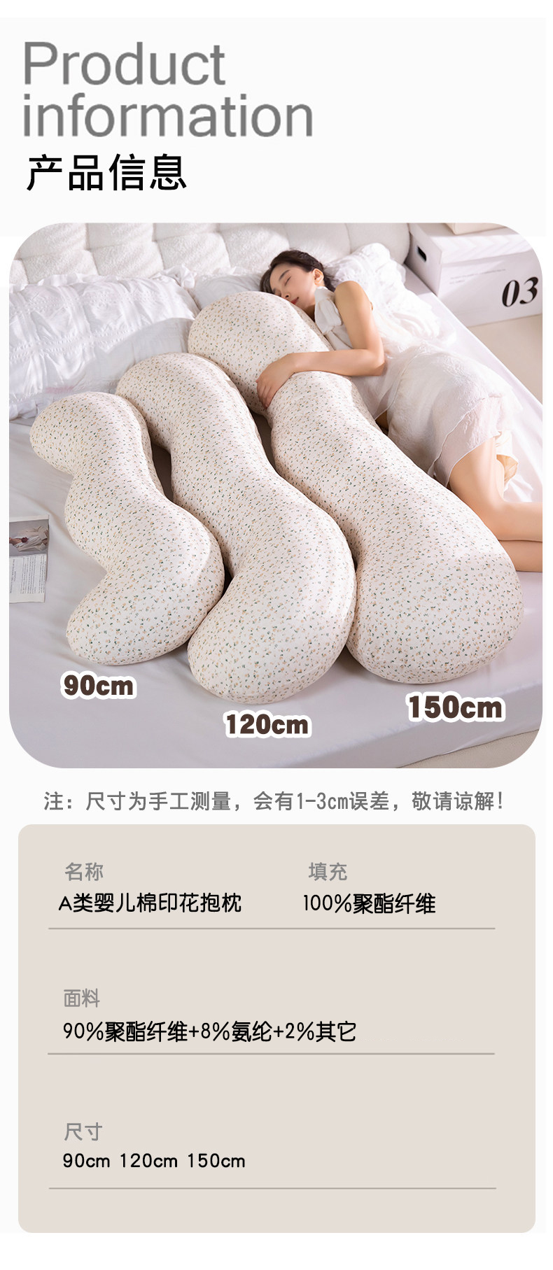 商品名称:(总)蔻眠 婴儿棉印花长条抱枕夹腿抱枕靠枕芯枕头