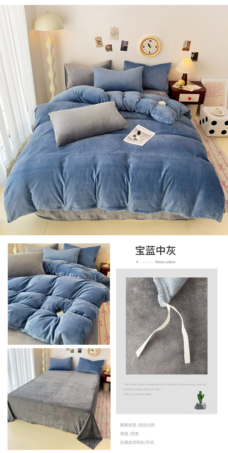 商品名称:芷凡家纺 2025新款牛奶绒加厚纯色条纹格子被套 牛奶绒被套-蓝格