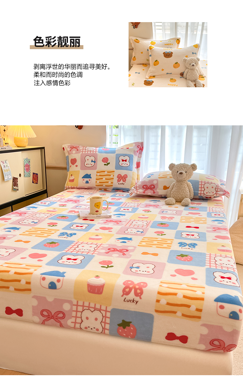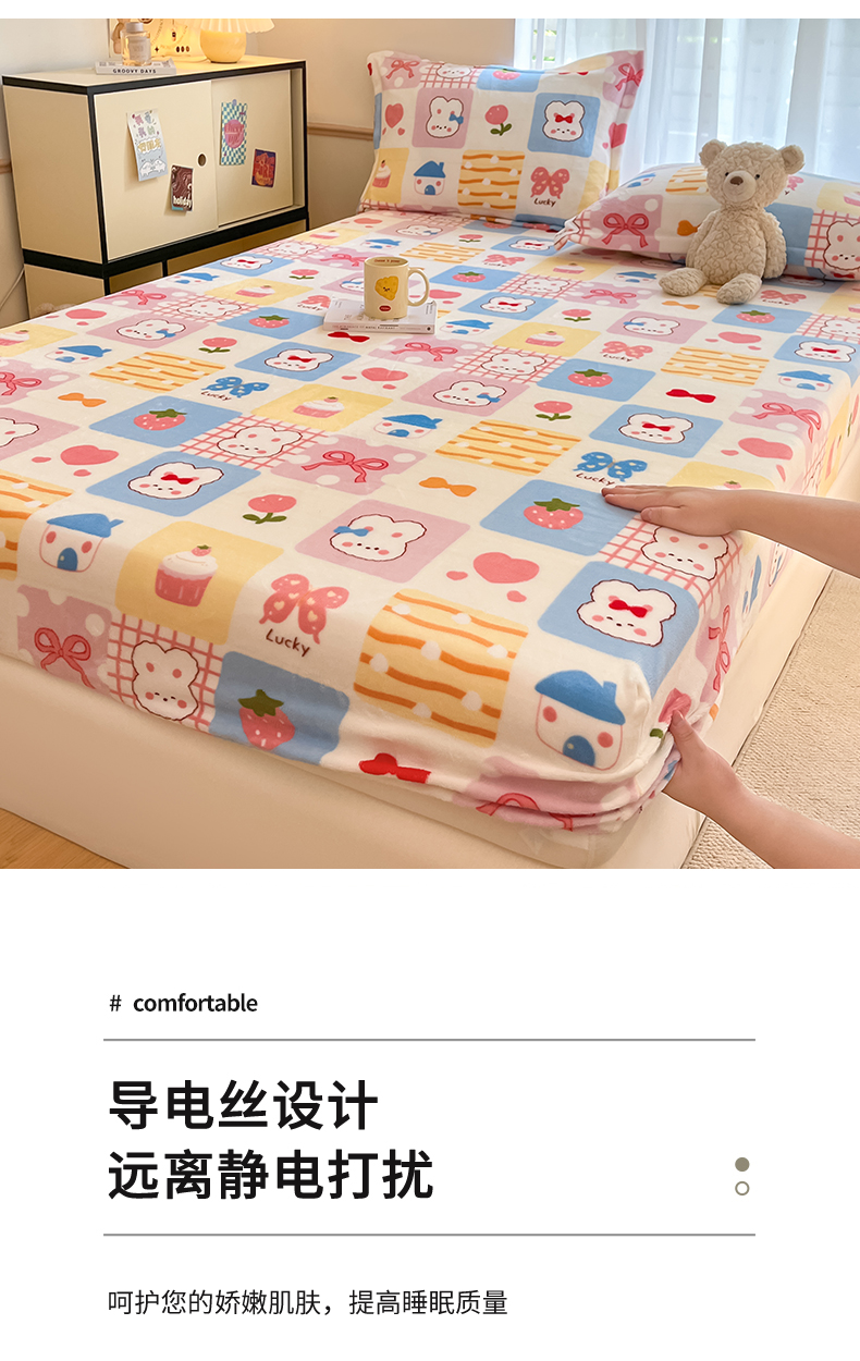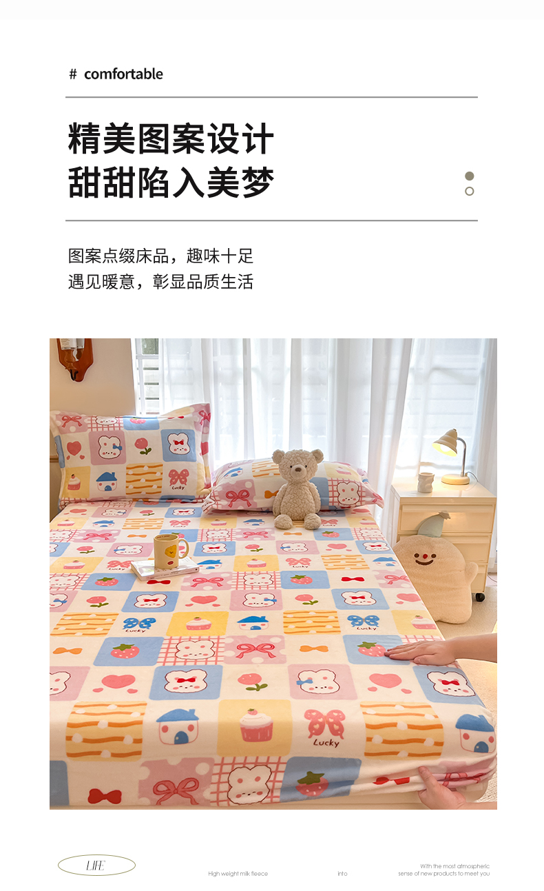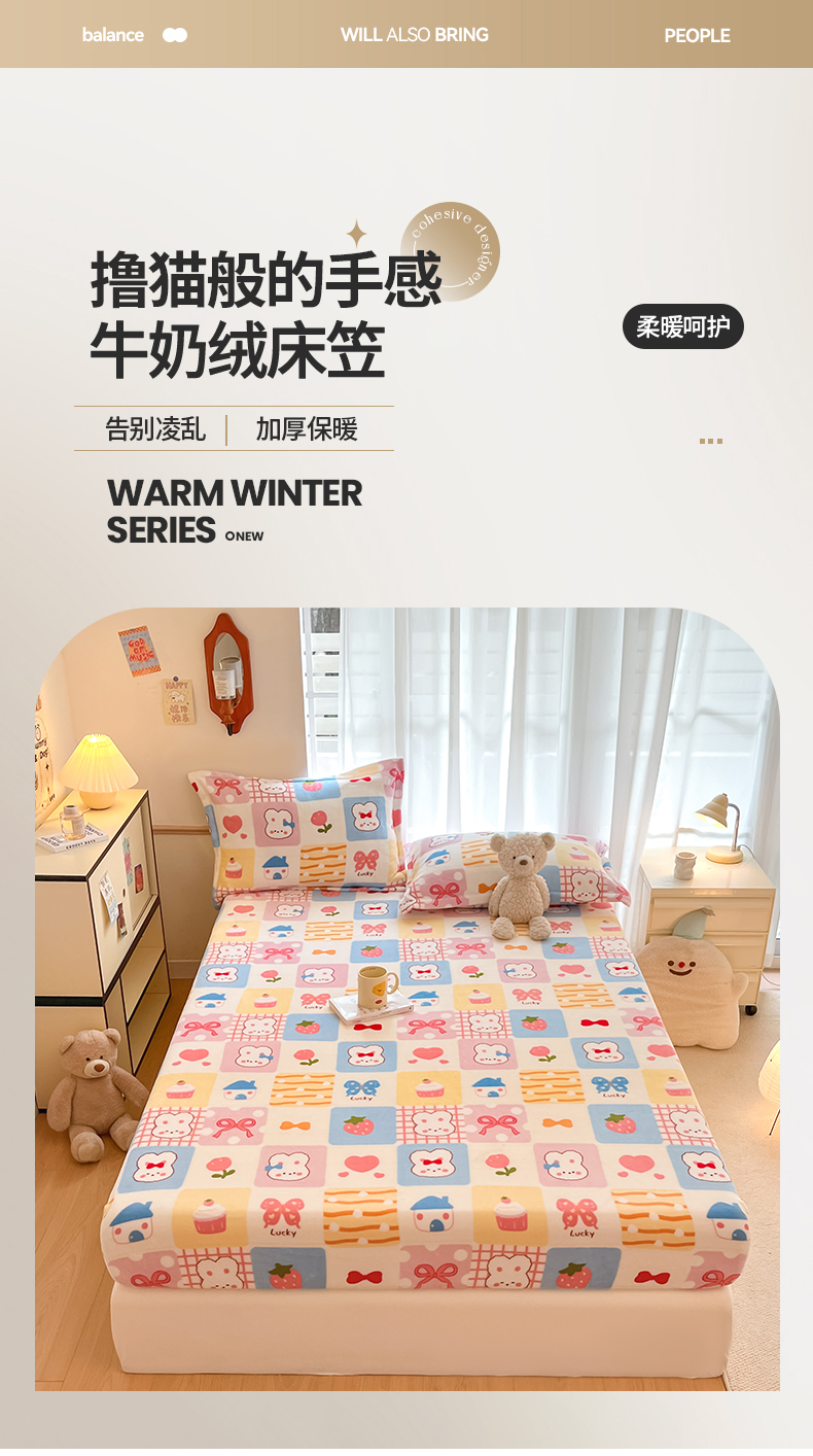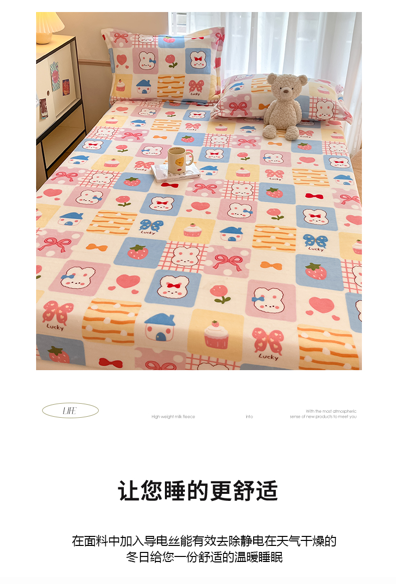 • 91家纺网 家纺一手货源 找家纺 寻米 2025新款高克重加厚保暖牛奶绒床笠-大床图 小兔日记