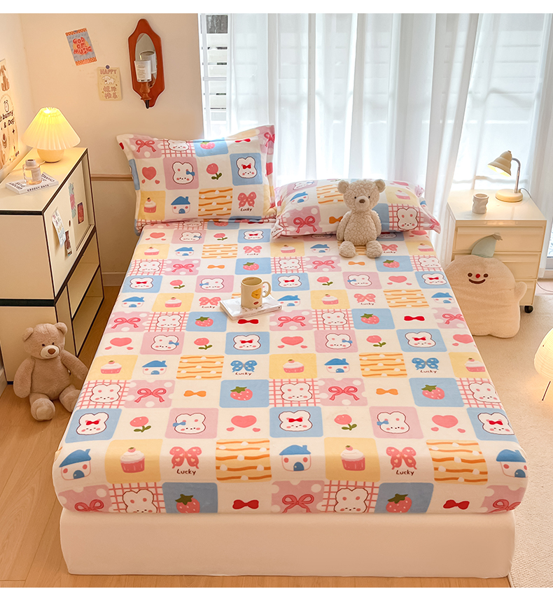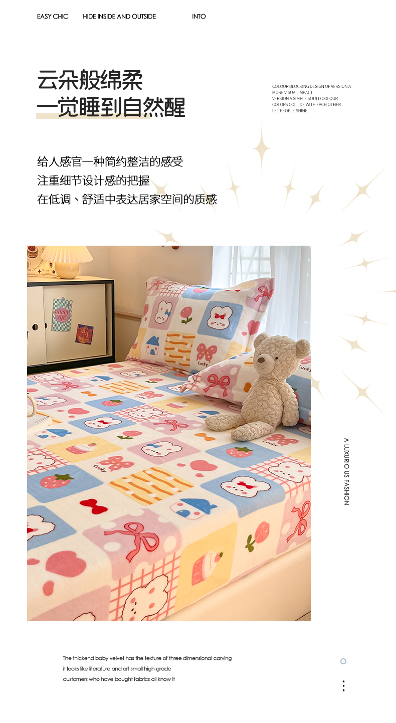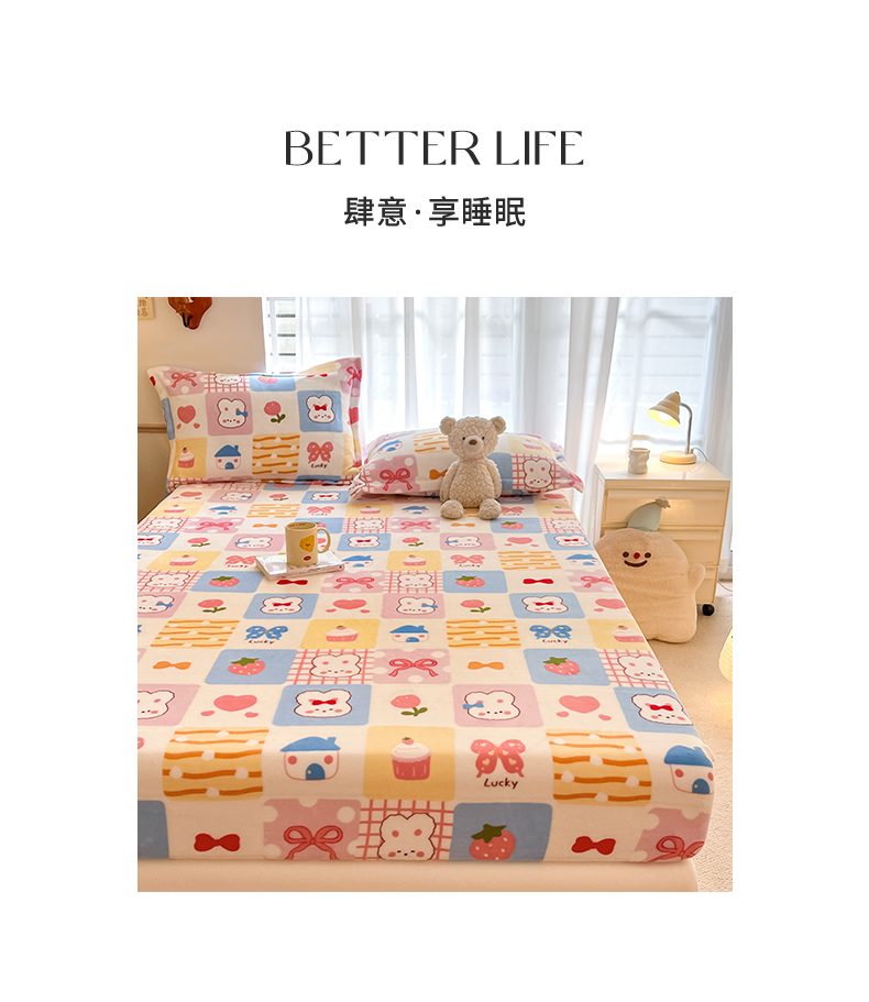 寻米 2025新款高克重加厚保暖牛奶绒床笠-大床图 小兔日记