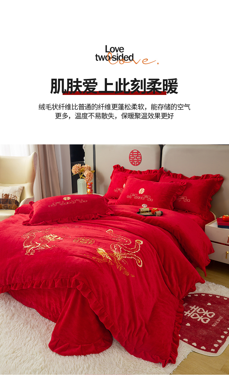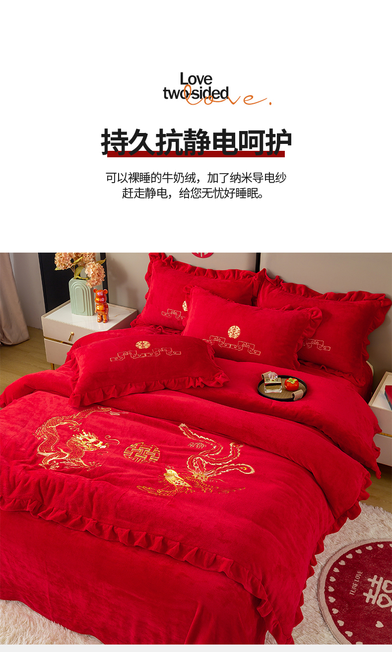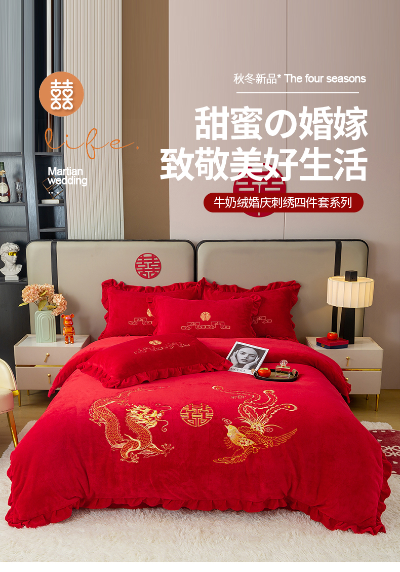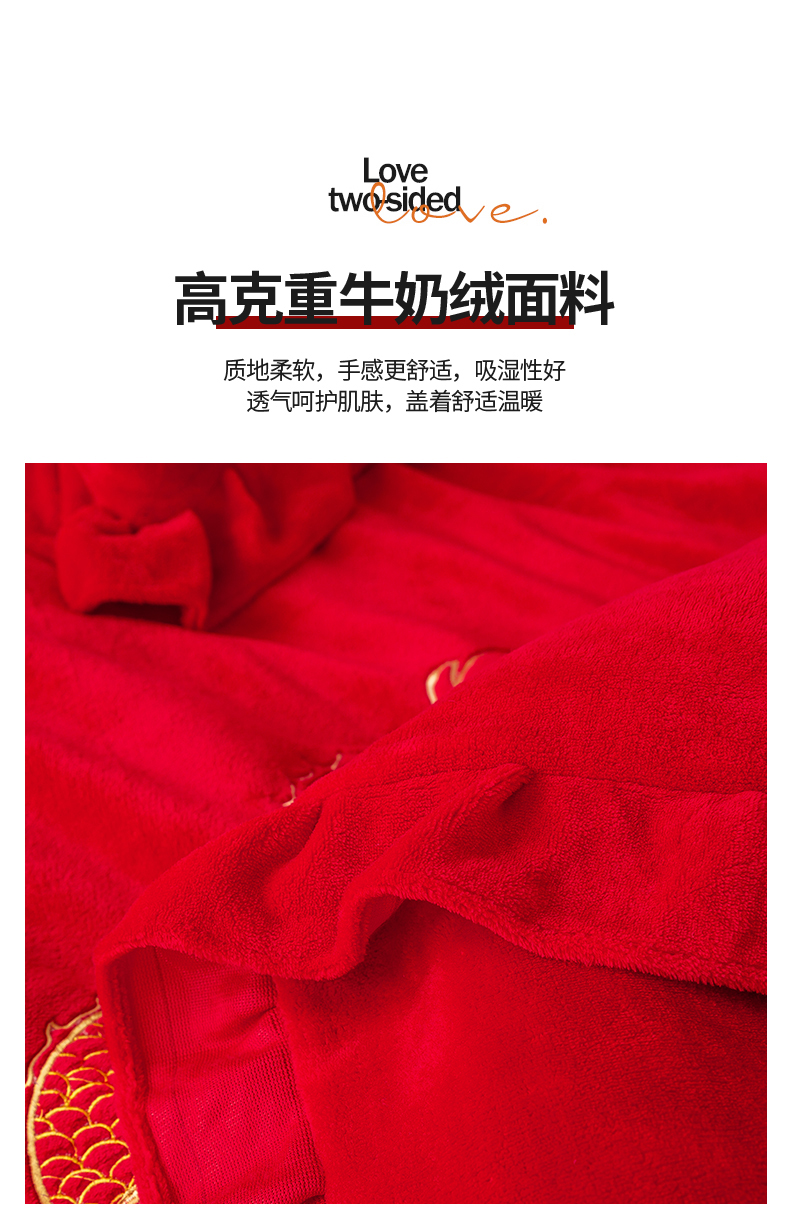 (总)银石 2024新款秋冬230克全消光牛奶绒大红四件套,龙凤呈祥,喜结良缘,心心相印