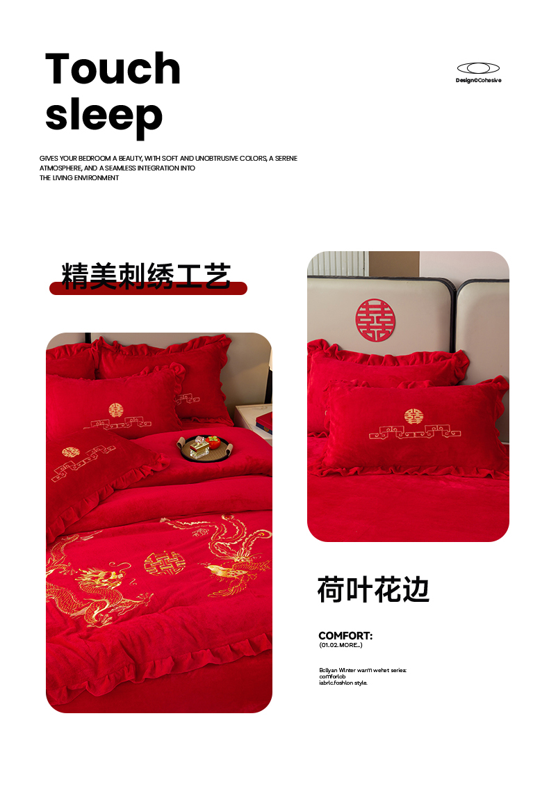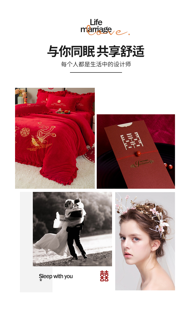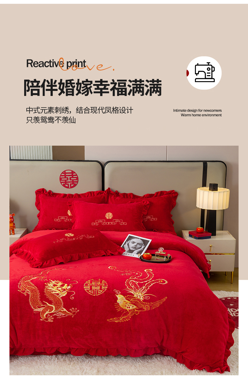 (总)银石 2025新款230克全消光牛奶绒婚庆大红高克重四件套,浪漫约定,爱之梦,百年好合,龙凤呈祥,喜结良缘,心心相印