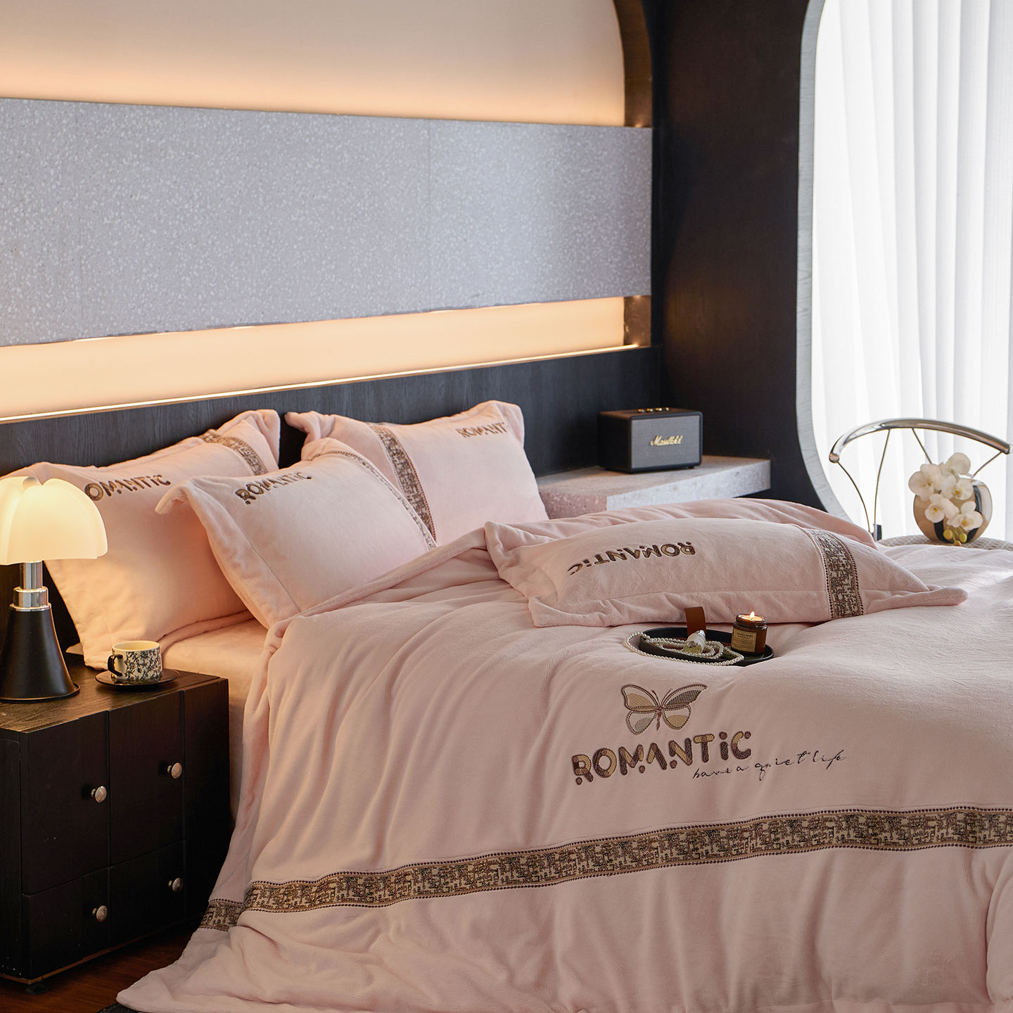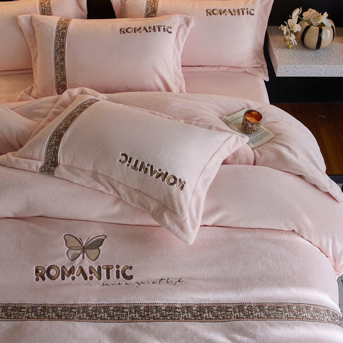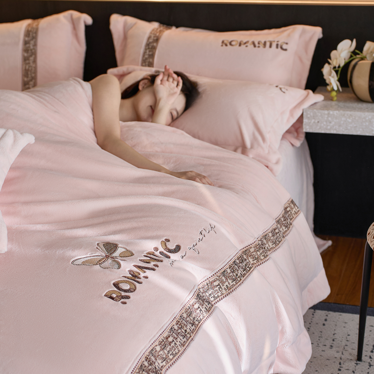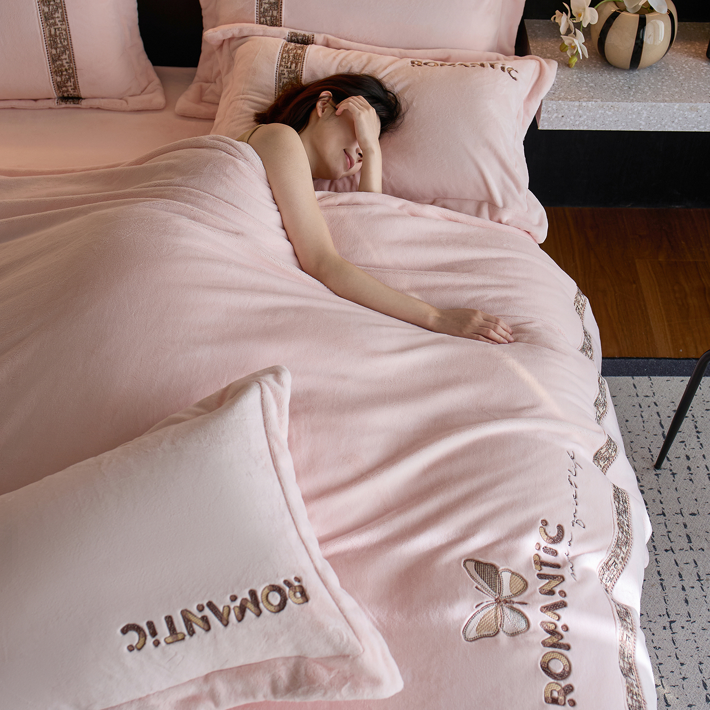 商品名称:蓝梦 2025新款直播爆款270克全消光牛奶绒系列四件套-克罗地亚 梦想粉