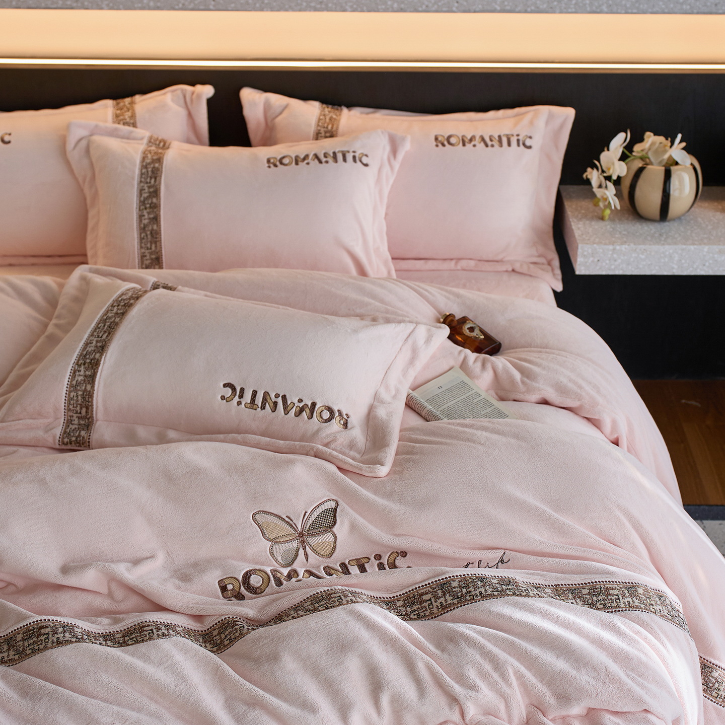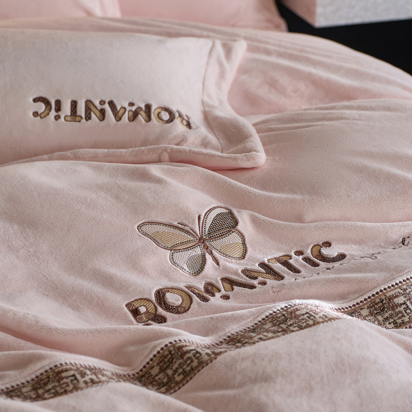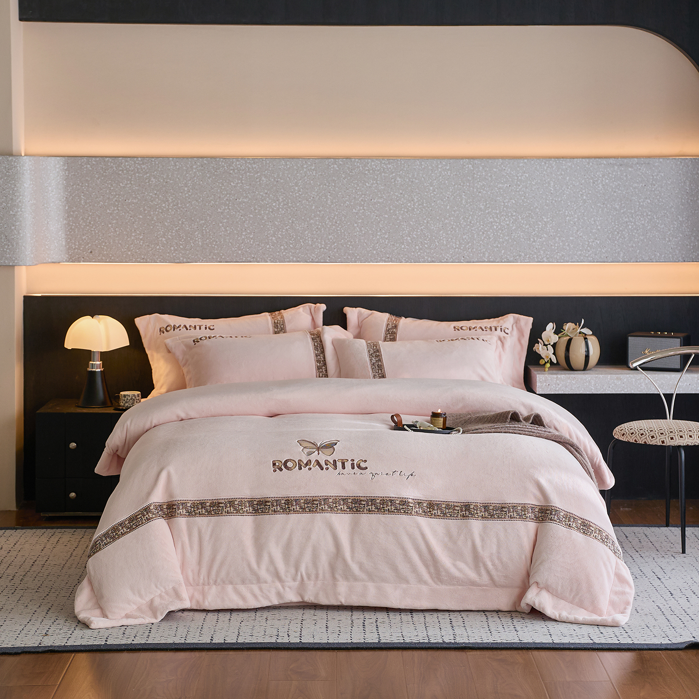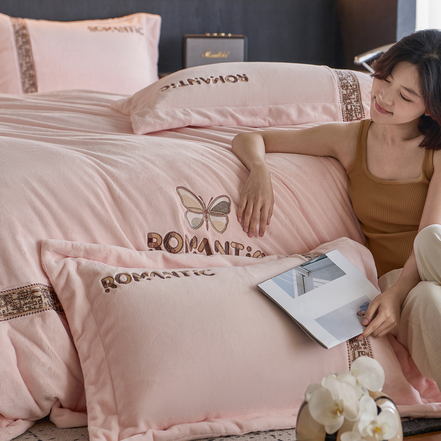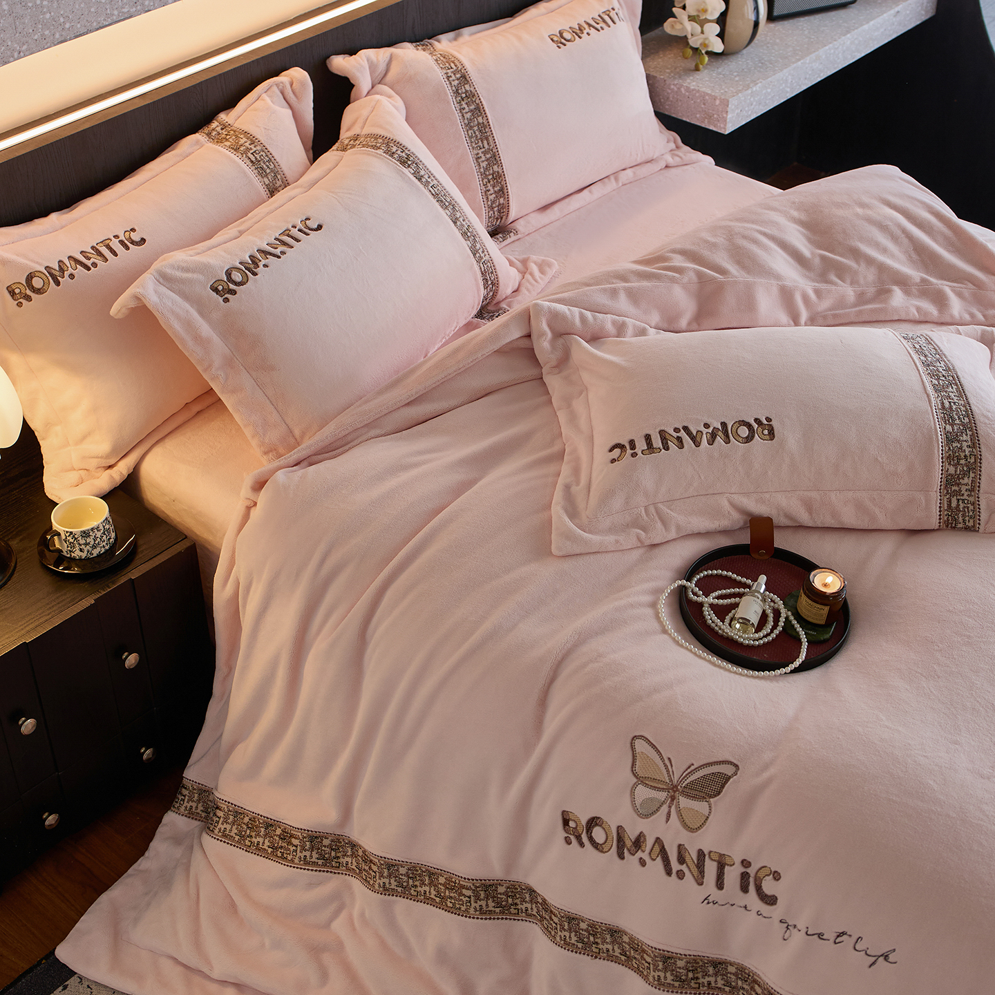 商品名称:蓝梦 2025新款直播爆款270克全消光牛奶绒系列四件套-克罗地亚 梦想粉