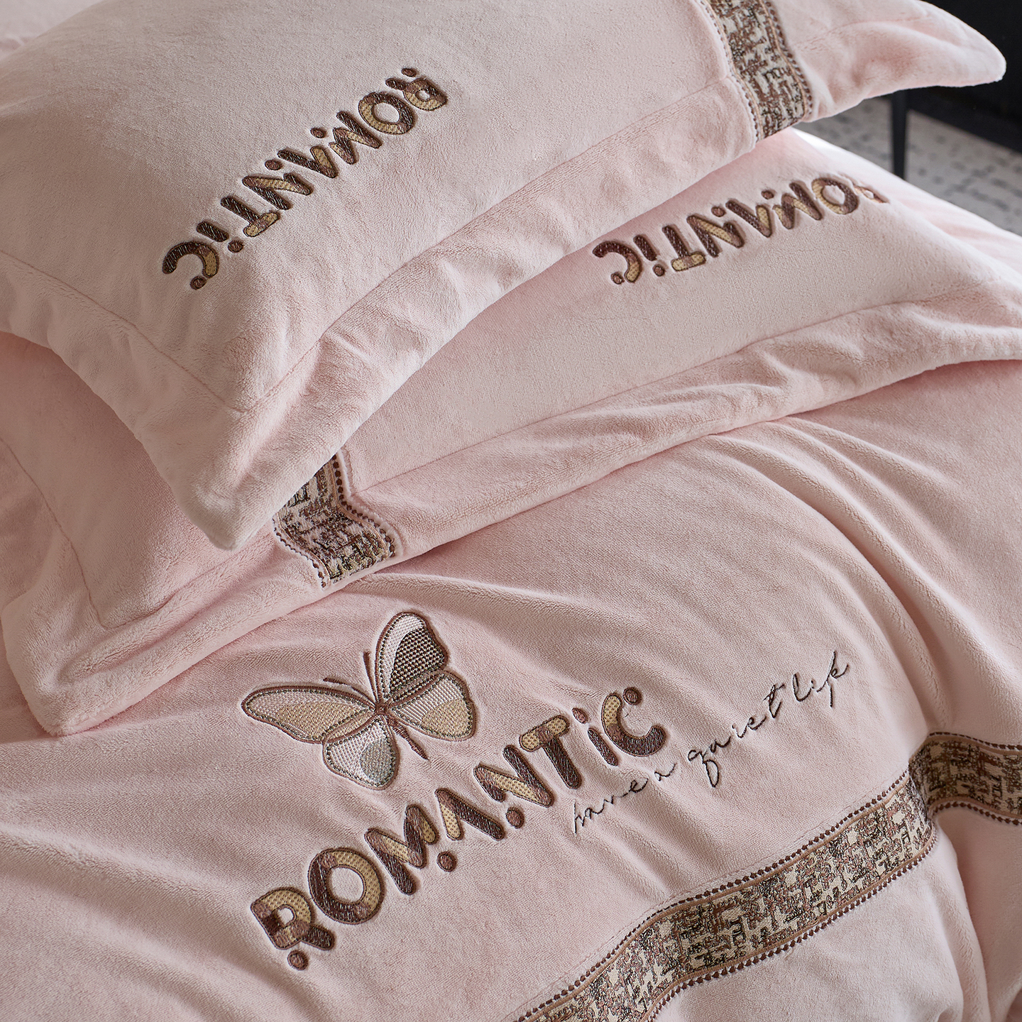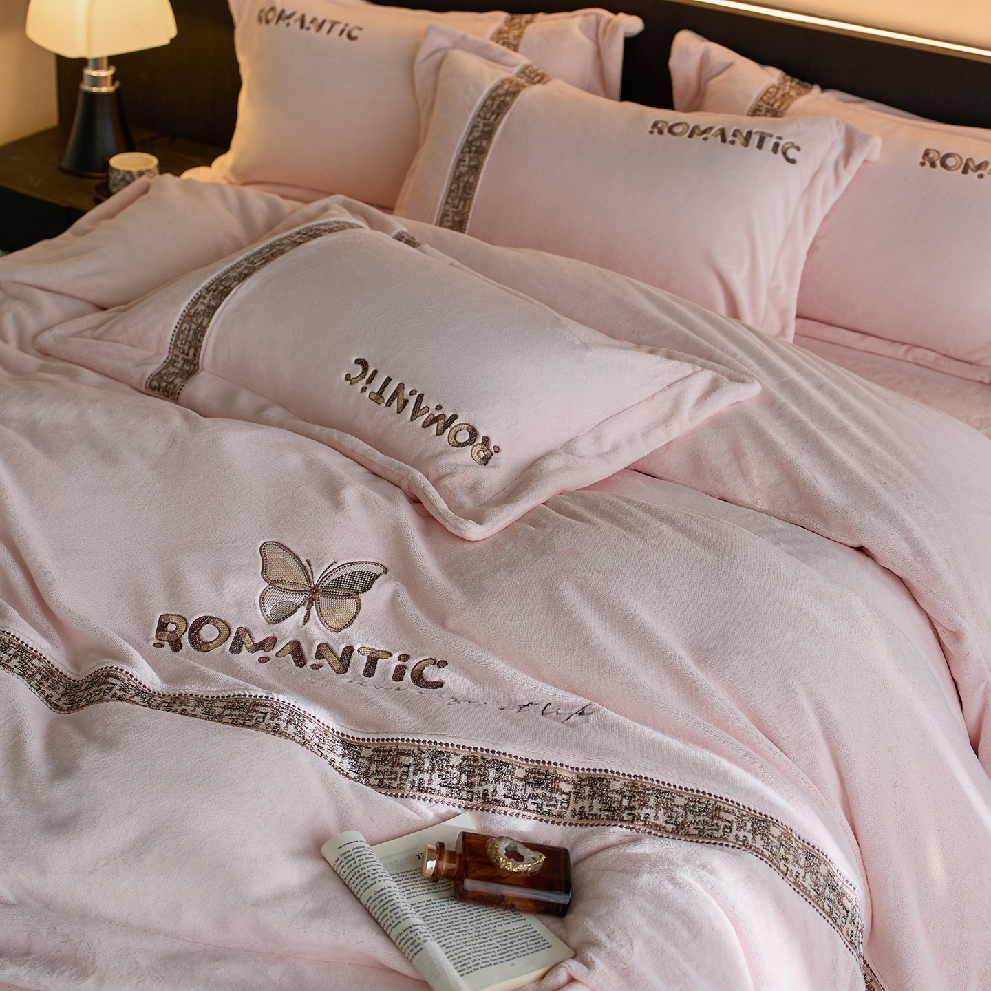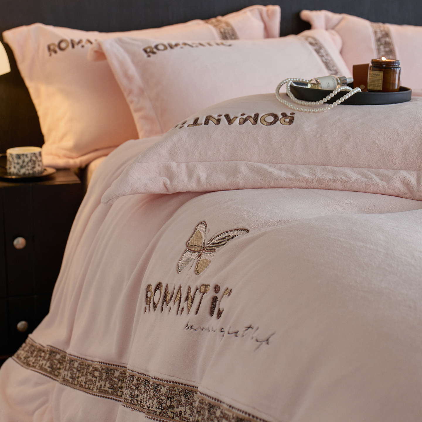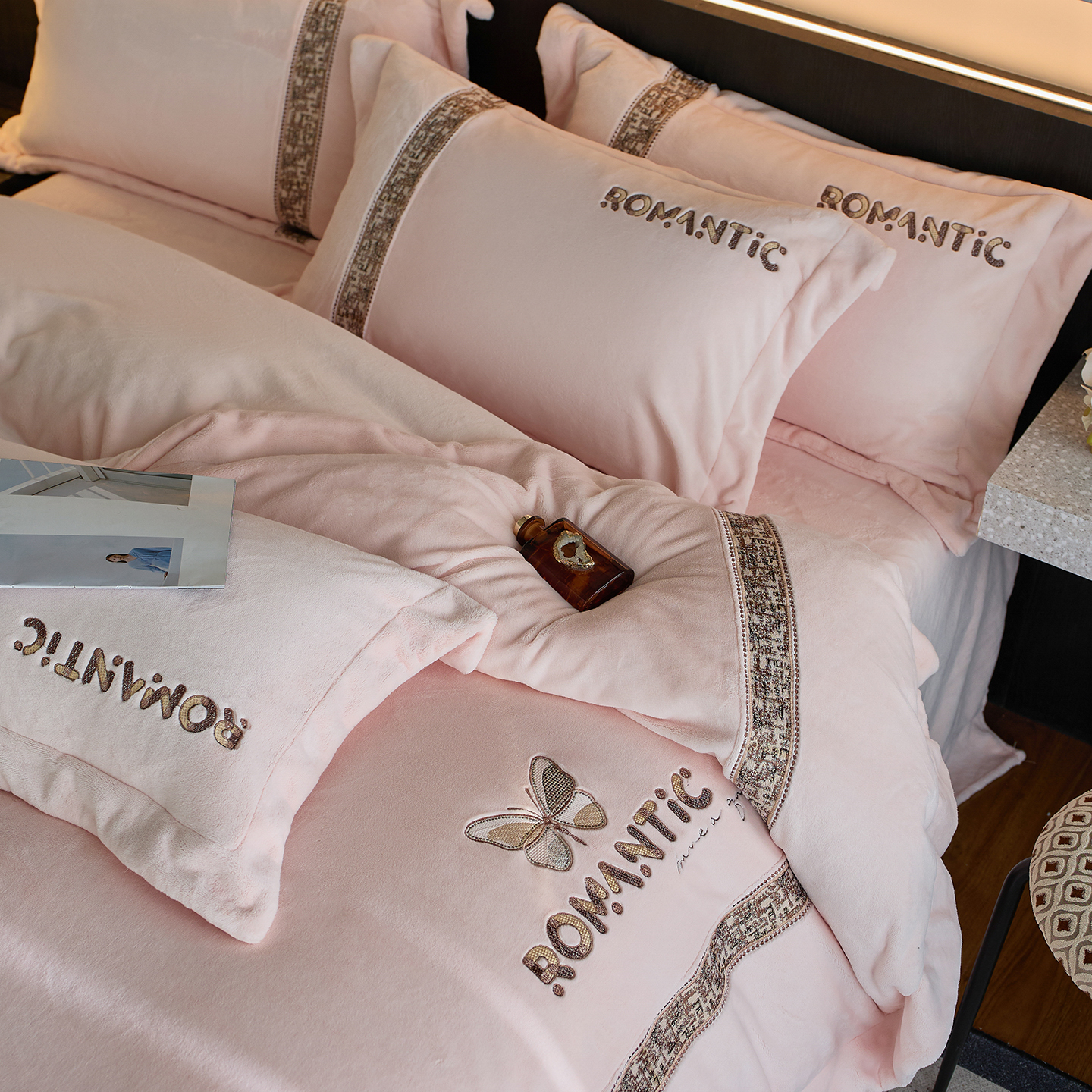 商品名称:蓝梦 2025新款直播爆款270克全消光牛奶绒系列四件套-克罗地亚 梦想粉