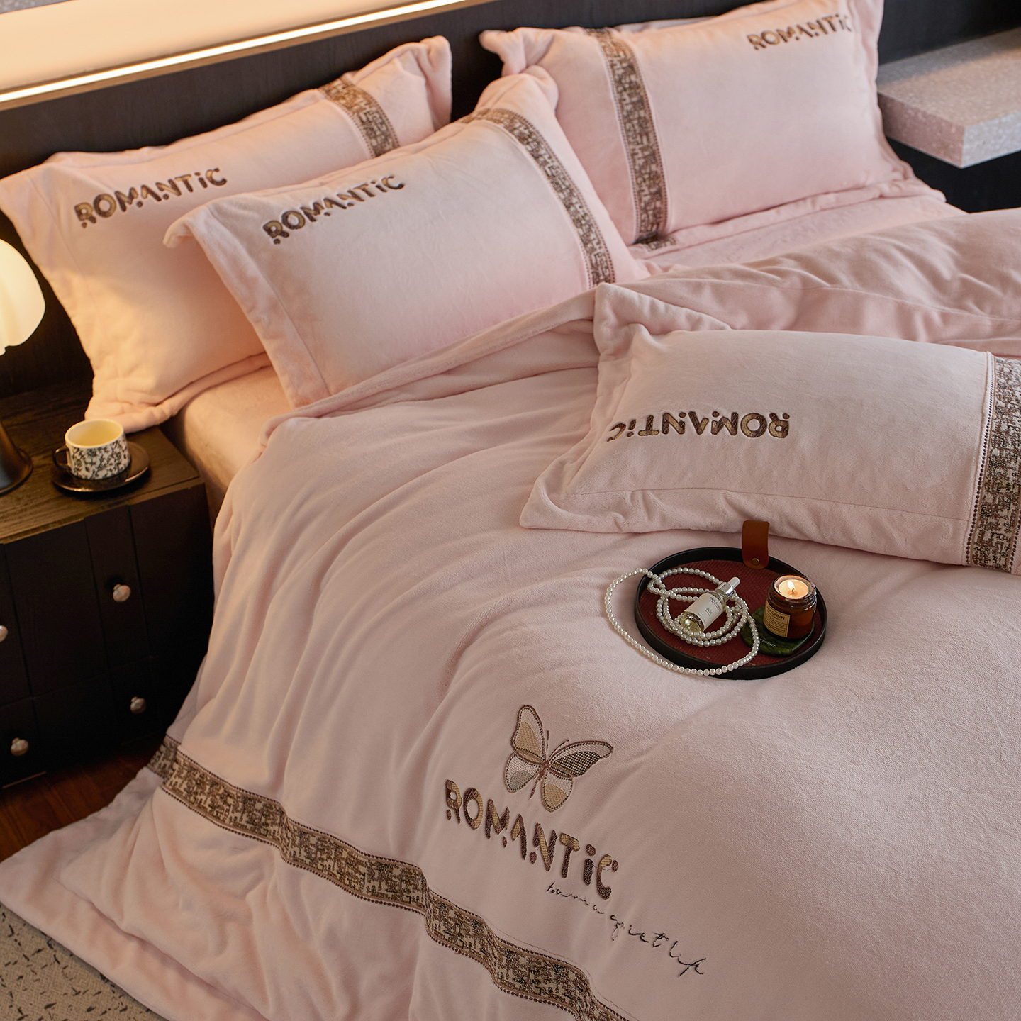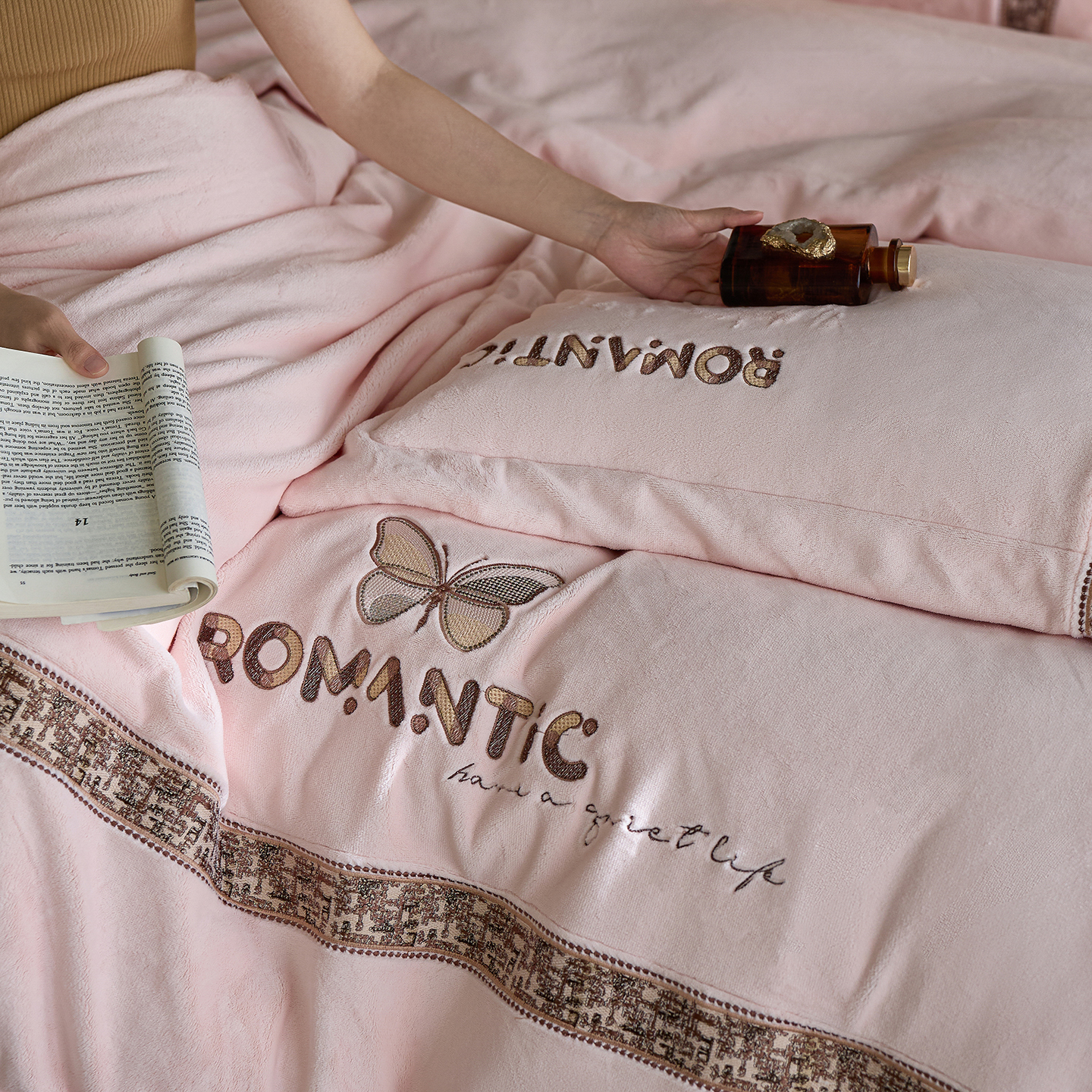 蓝梦 2025新款直播爆款270克全消光牛奶绒系列四件套-克罗地亚 梦想粉