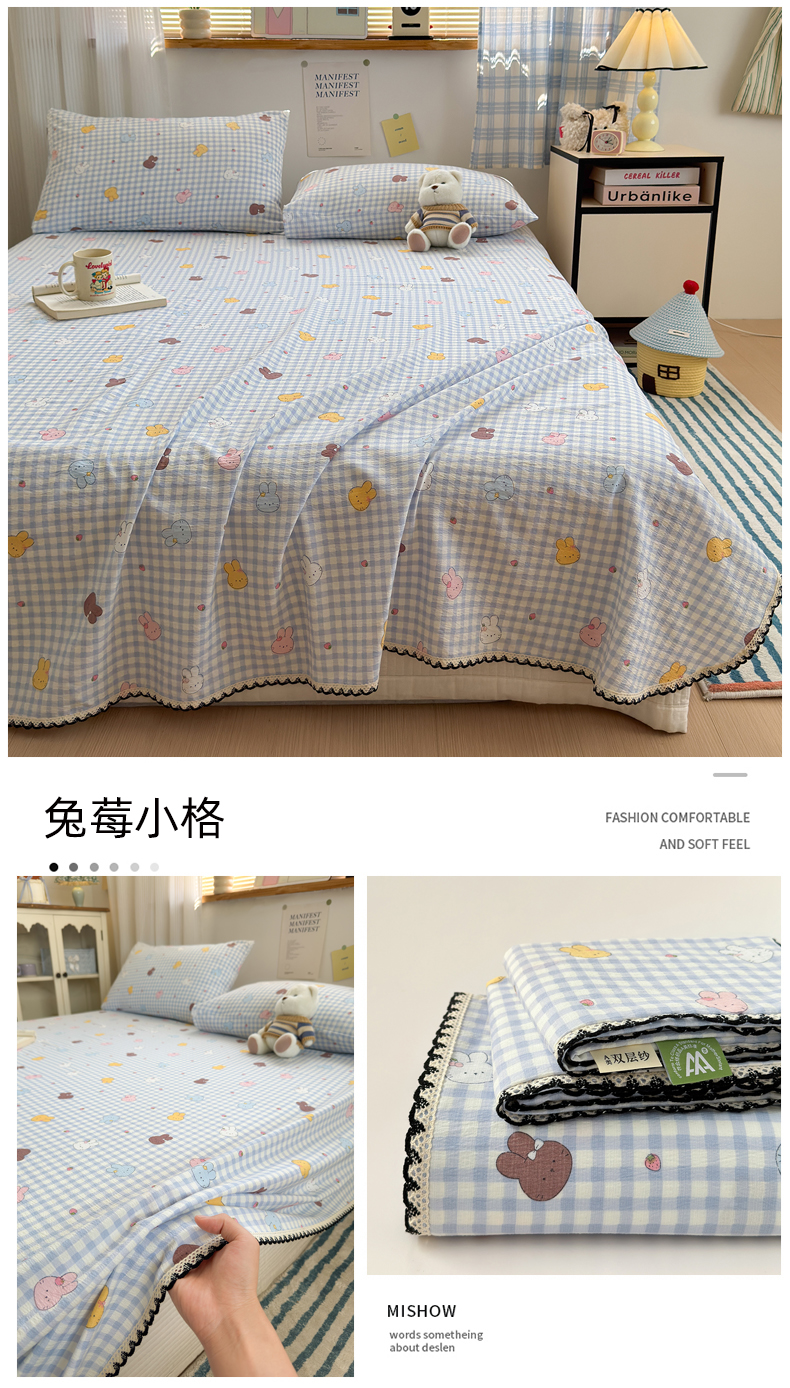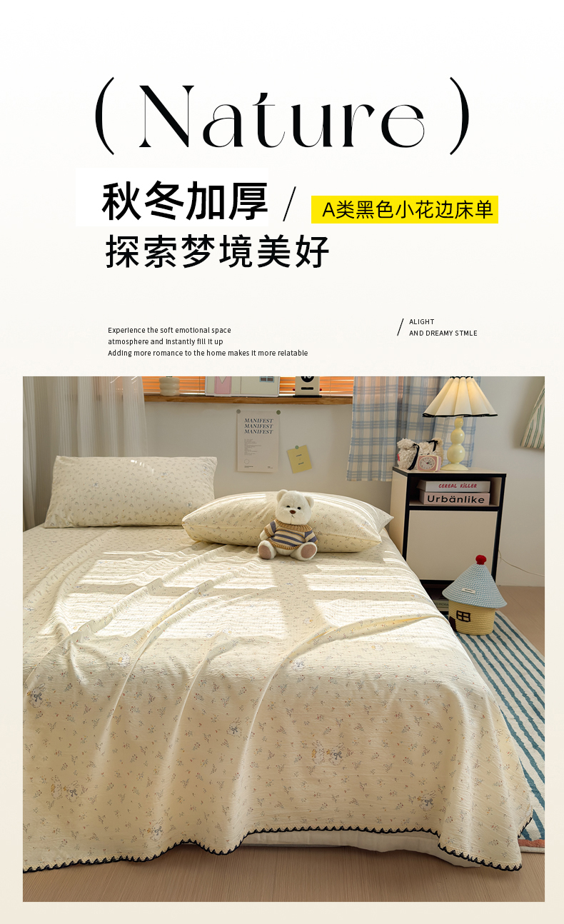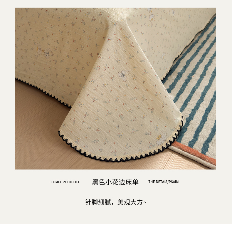 当前位置: 91家纺网 > 商品网购 > 床品套件 > 三件套 > 沐芷 2025 秋冬加厚床单高克重双层纱黑色小花边被单床单三件套 春日絮兔