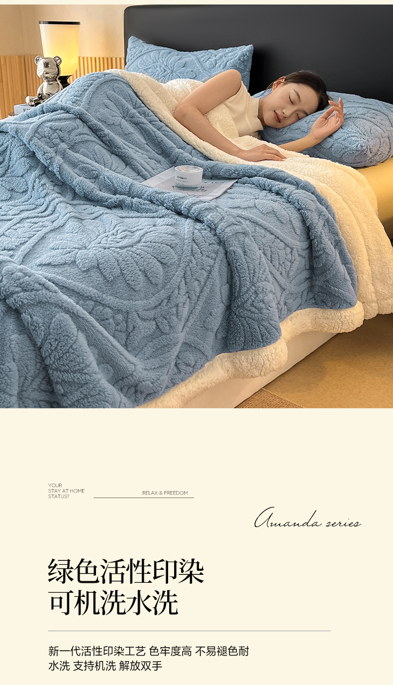 (总)莱家富 2026新款加厚双层复合毯舒棉绒剪花毛毯,兰色,绿色,米色,深灰色,樱花粉,紫色