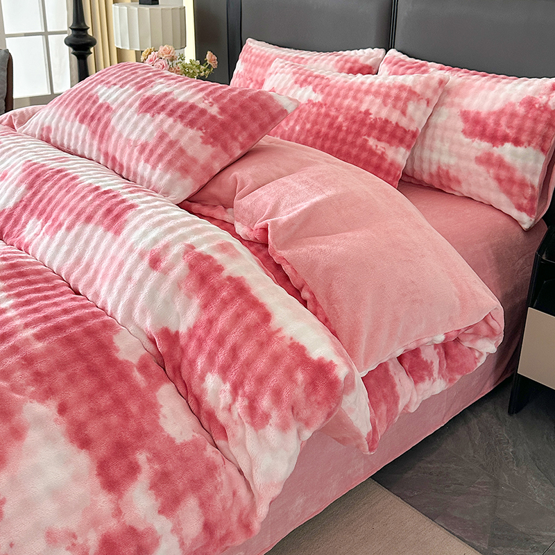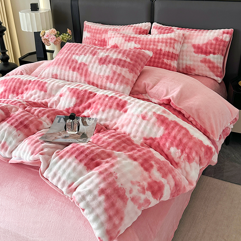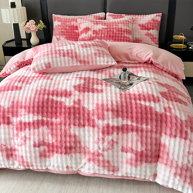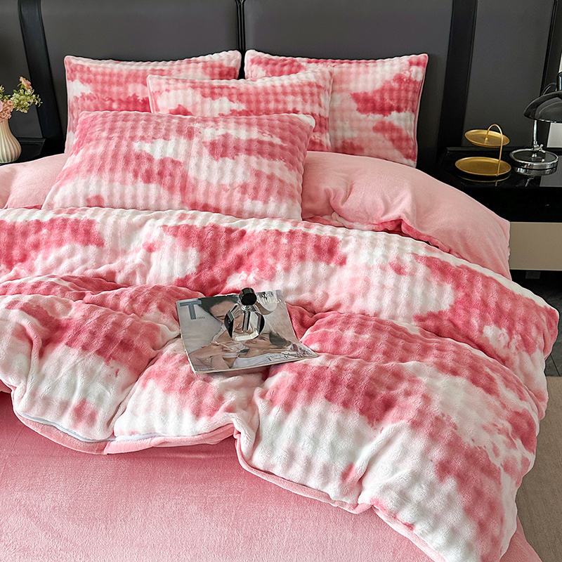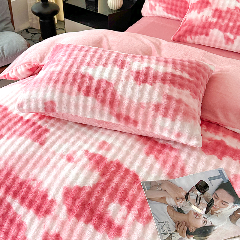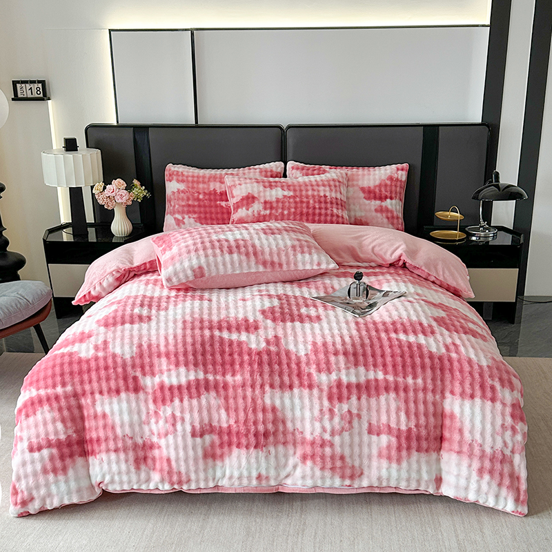 商品名称:柏薇 2025新款炫彩仿兔毛绒大泡泡绒印大理石纹高克重绒四件套 炫彩泡泡粉