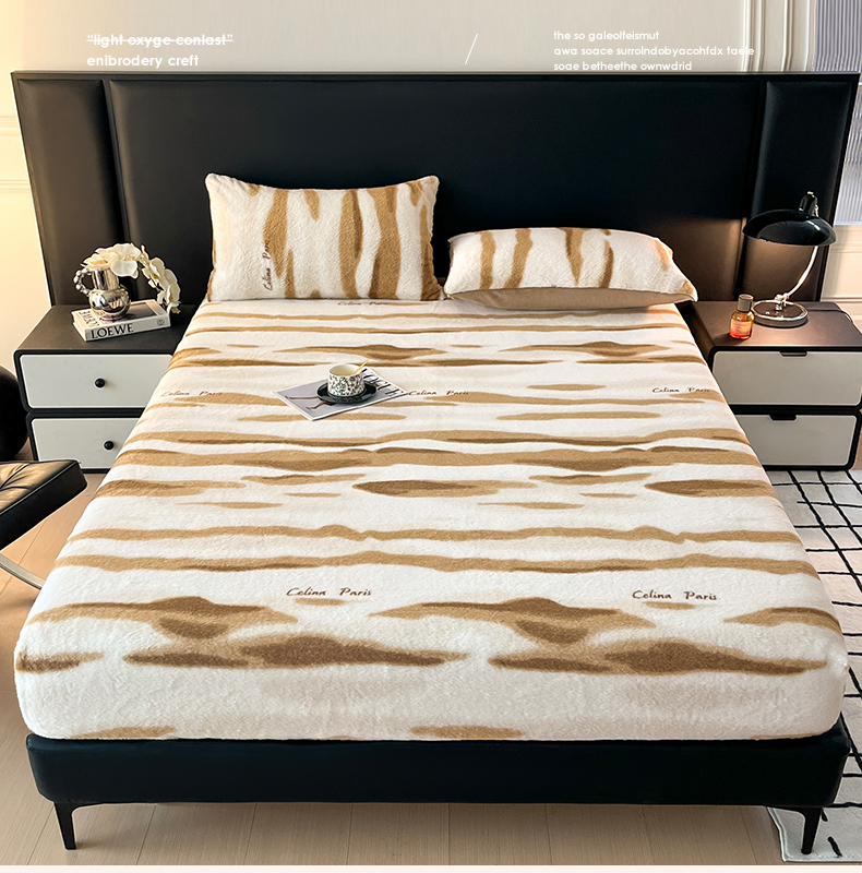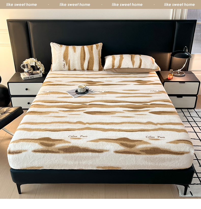 乐窝家纺仓储 2025新款亲肤加厚保暖兔毛绒牛奶绒单品床笠单件床笠-美拉德 美拉德-拿铁纹