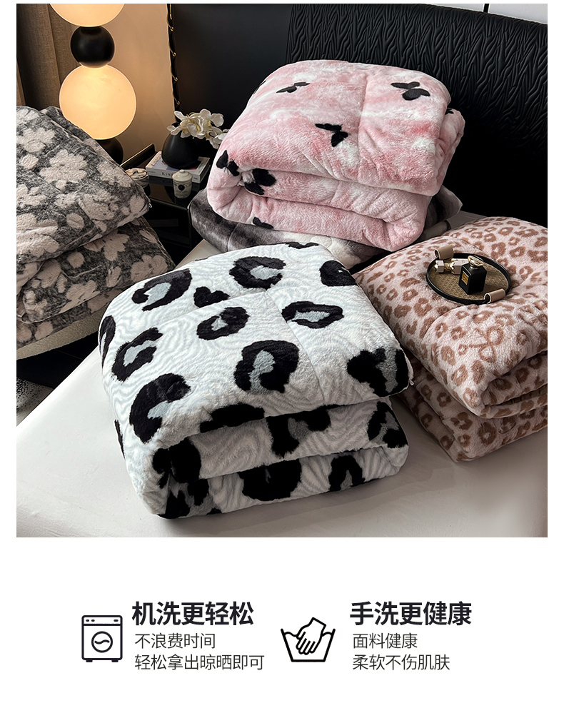 (总)米乐被业 2025新款兔毛印花豆豆被被子被芯,蝶恋,水墨渐变,花样蝴蝶结,奶牛纹,花漾