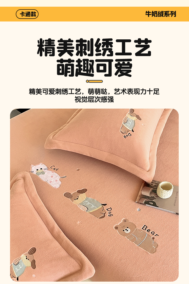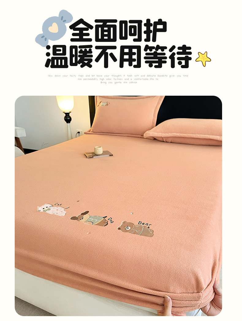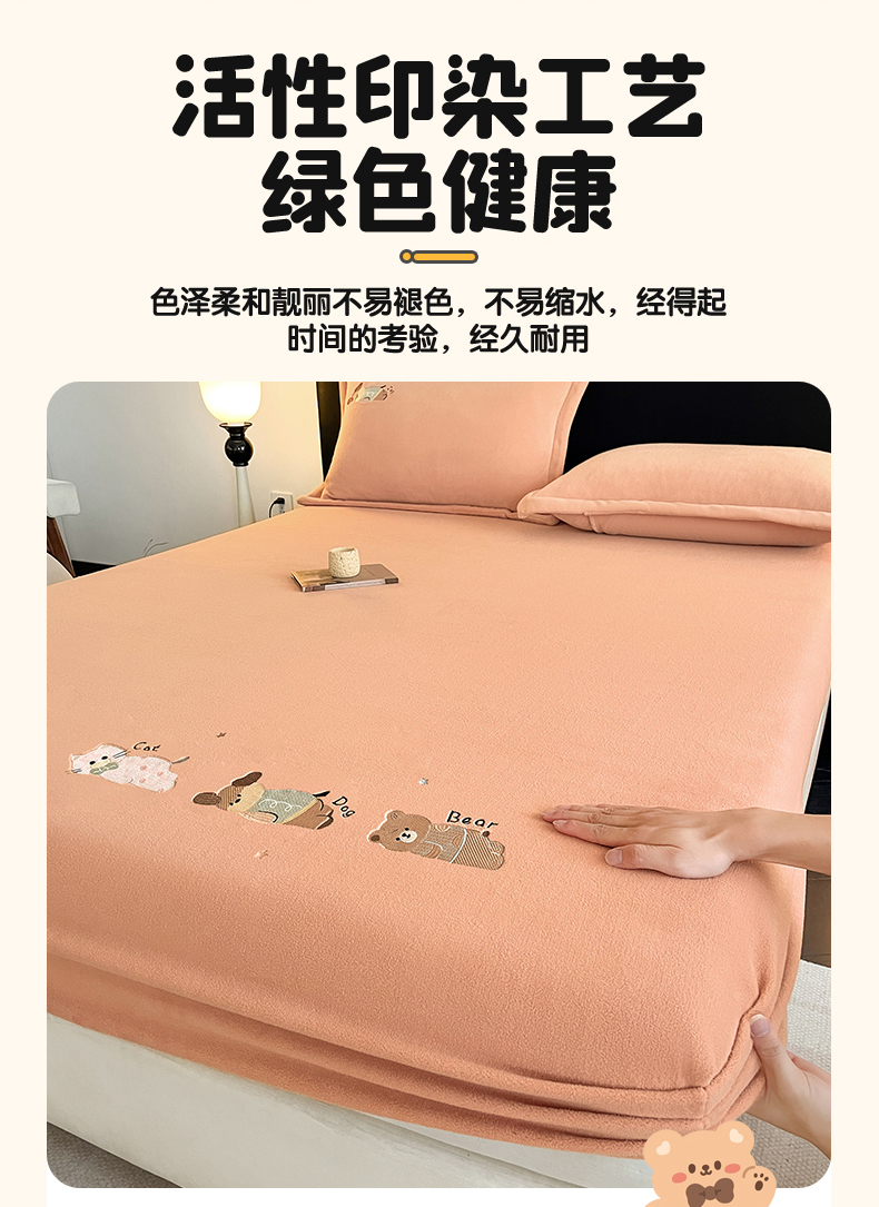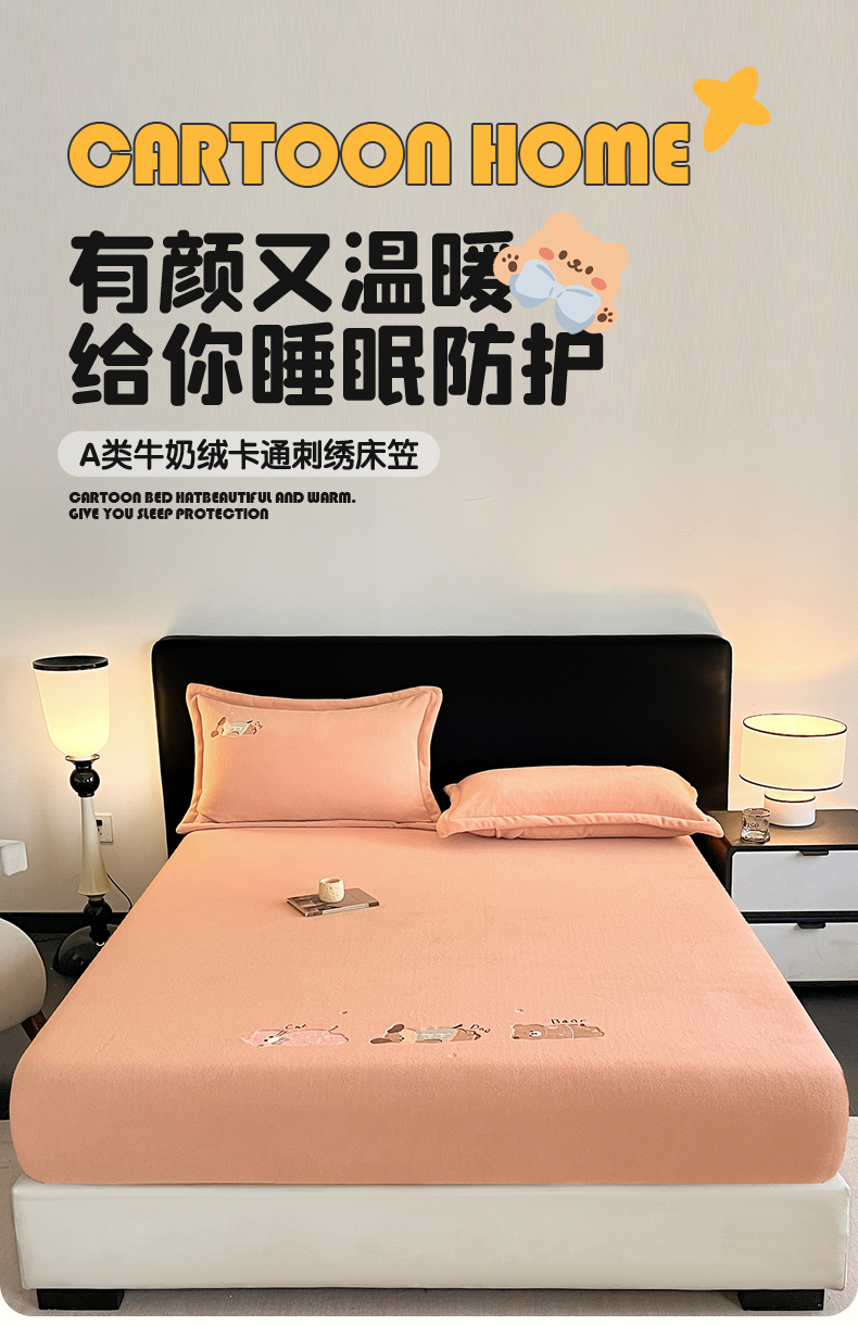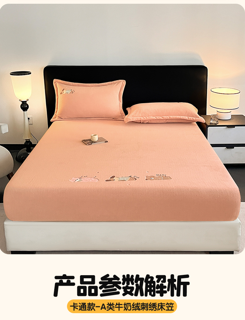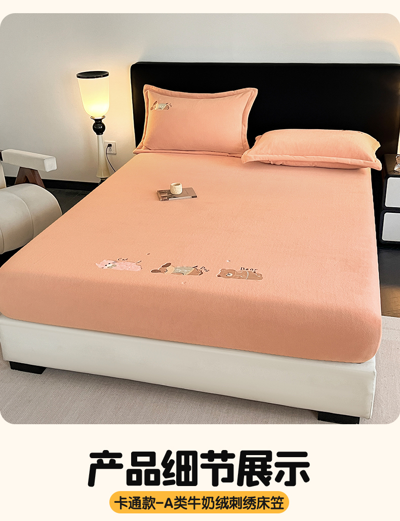 (总)笙意家纺 2025新款A类牛奶绒海獭绒卡通刺绣床笠,卡通-驼色,卡通-浅米色,卡通-香槟金,卡通-叶绿,卡通-玉粉,卡通-月光紫