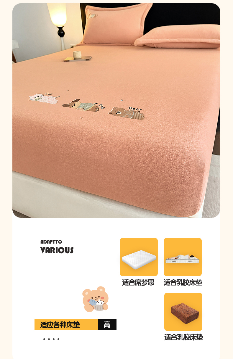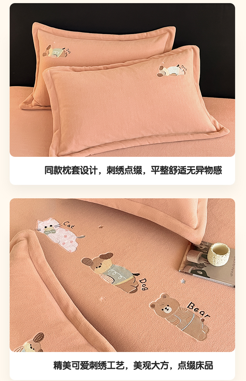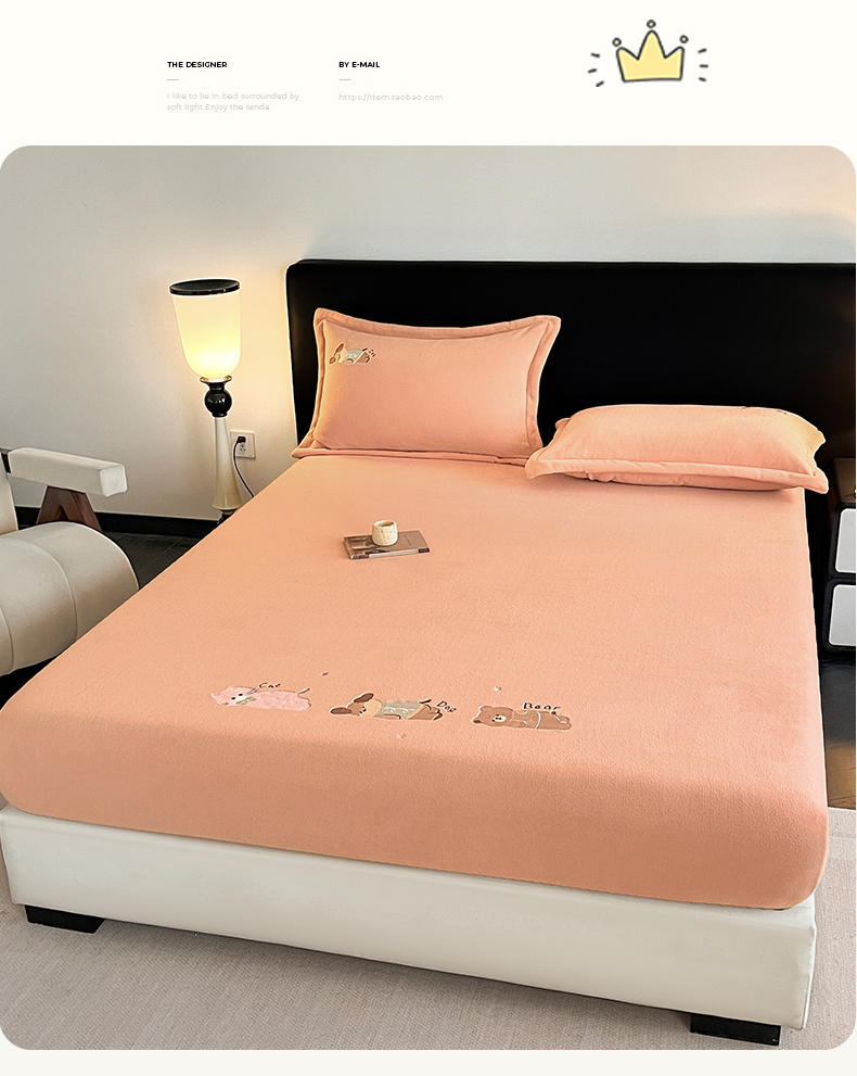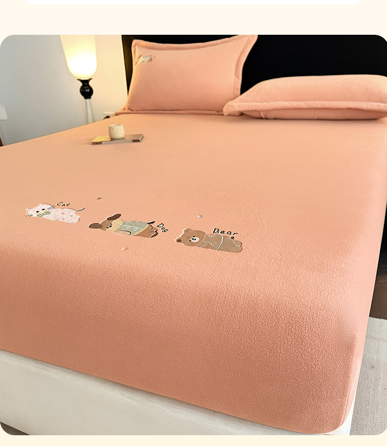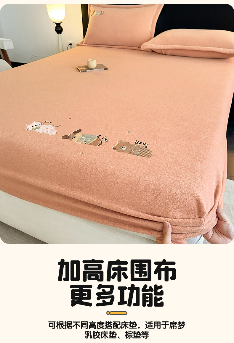 (总)笙意家纺 2025新款A类牛奶绒海獭绒卡通刺绣床笠,卡通-驼色,卡通-浅米色,卡通-香槟金,卡通-叶绿,卡通-玉粉,卡通-月光紫