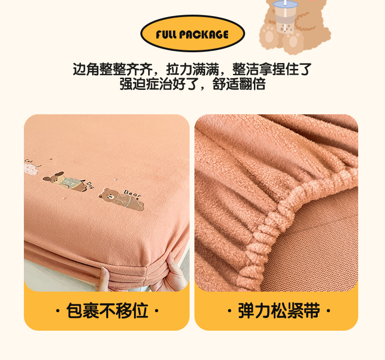 商品名称:笙意家纺 2025新款A类牛奶绒海獭绒卡通刺绣床笠 卡通-香槟金