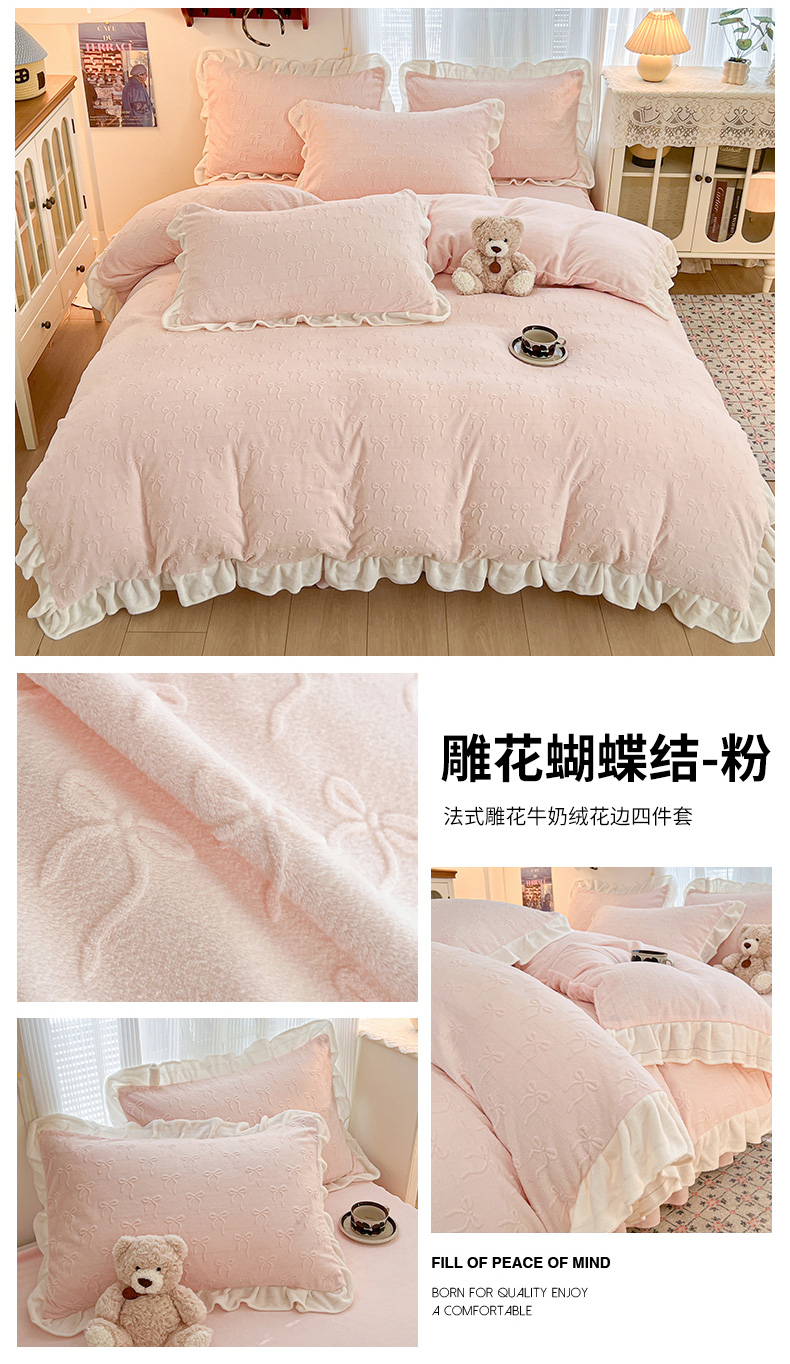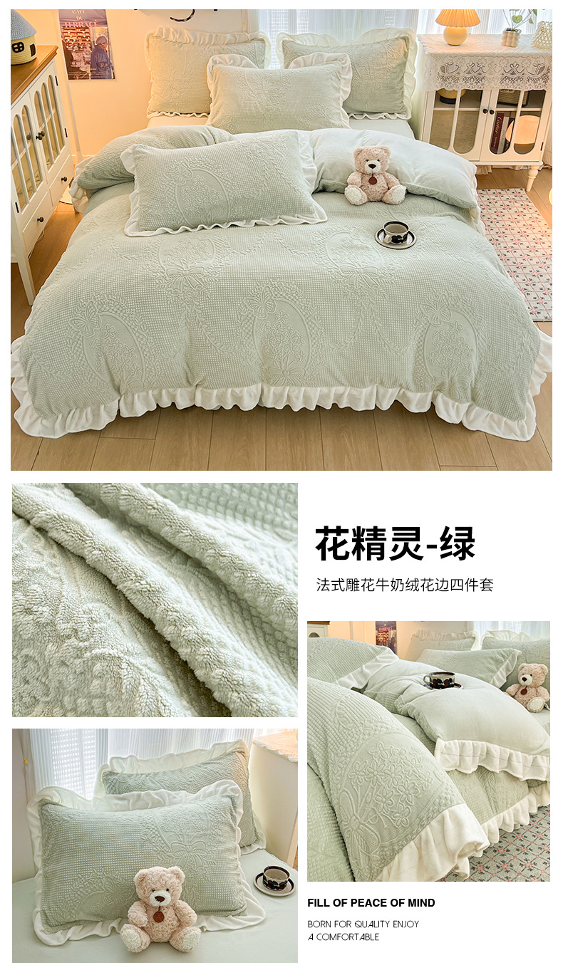 (总)安哆啦家纺 2025新款法式雕花牛奶绒花边四件套