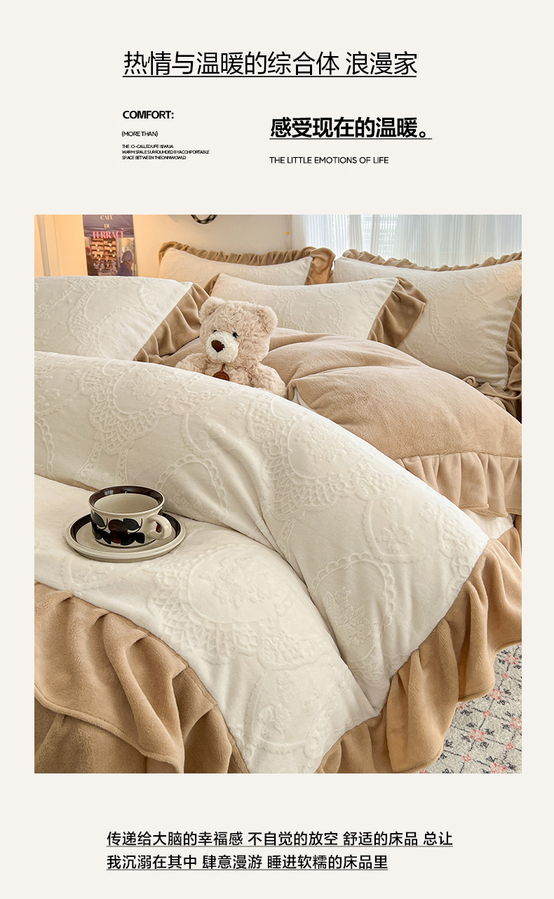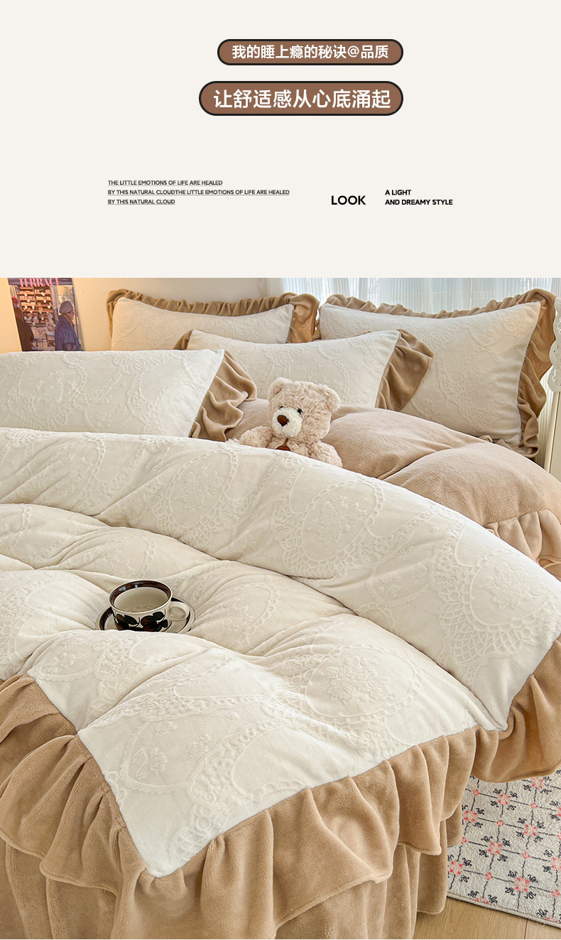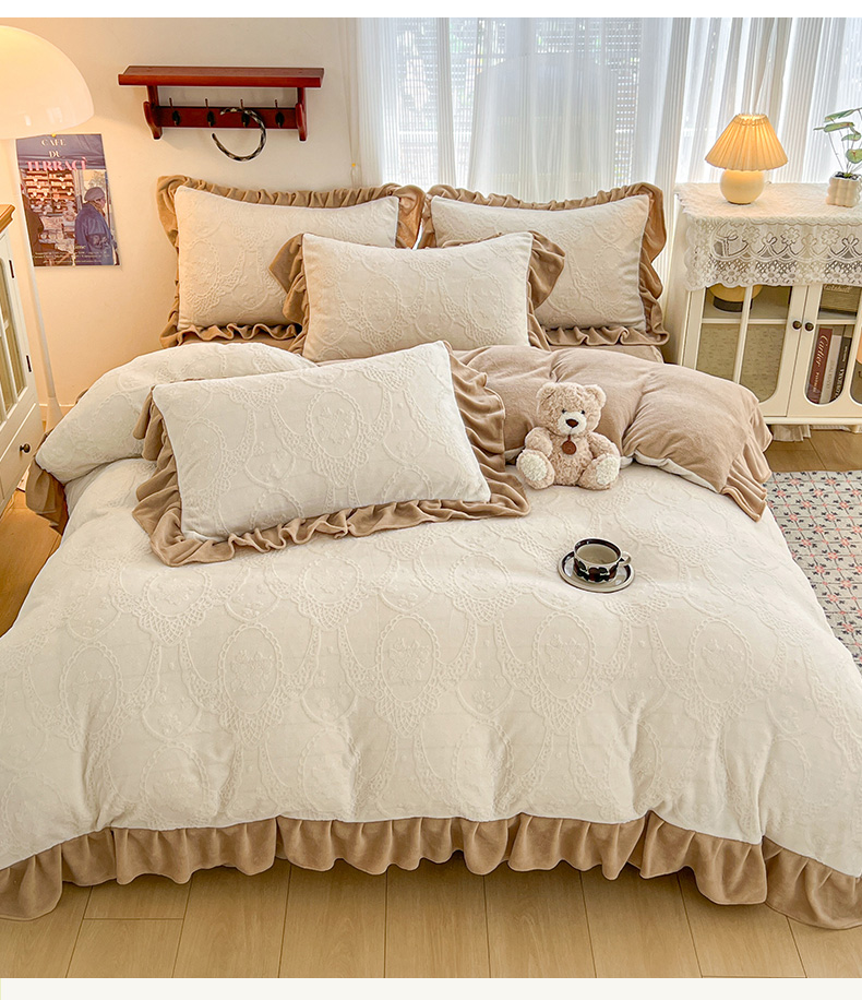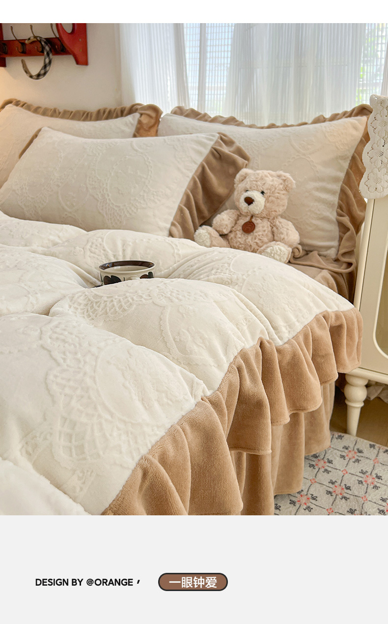 当前位置: 91家纺网 > 商品网购 > 床品套件 > 四件套 > 牛奶绒四件套 > 安哆啦家纺 2025新款法式雕花牛奶绒花边四件套 蕾丝花-白咖