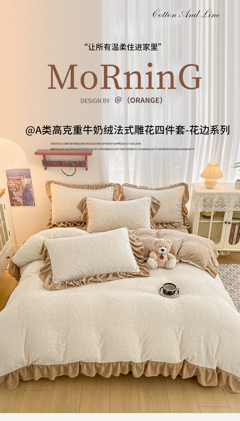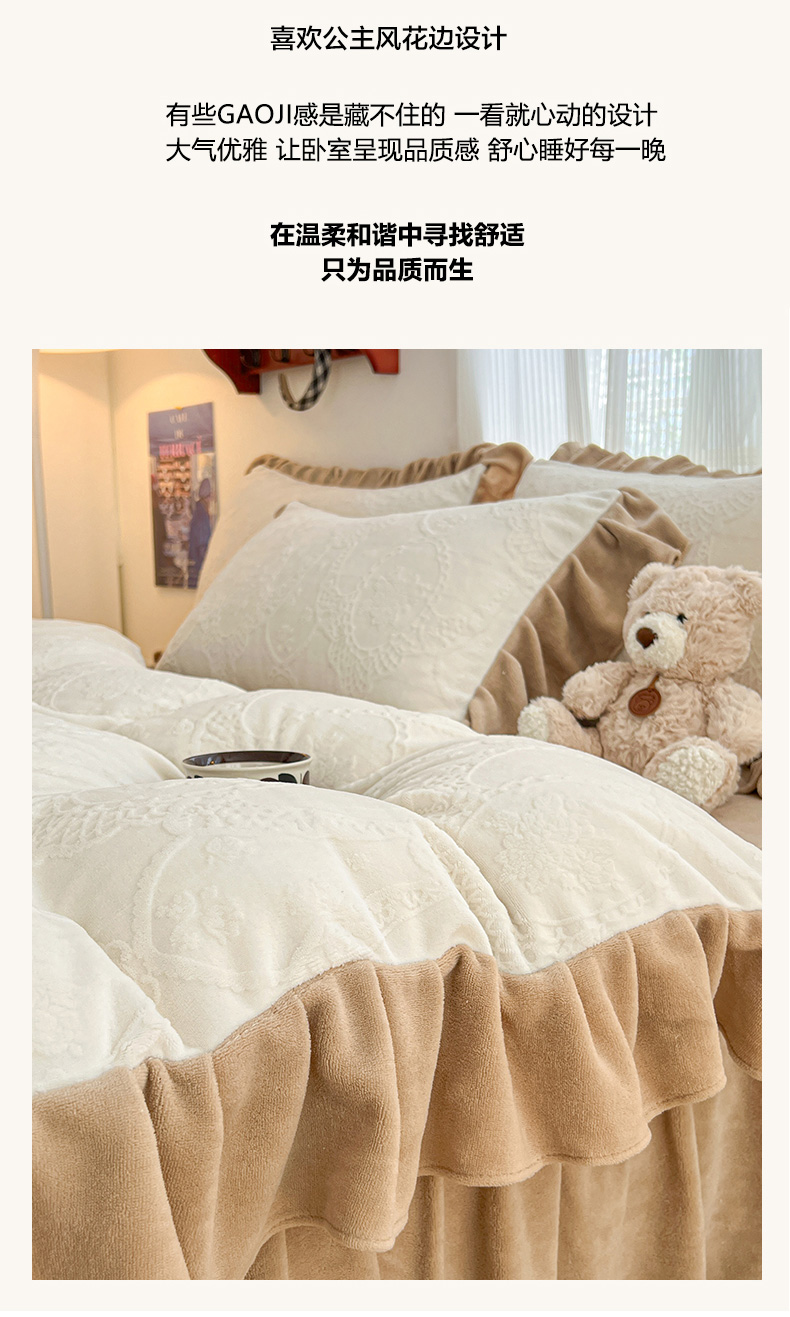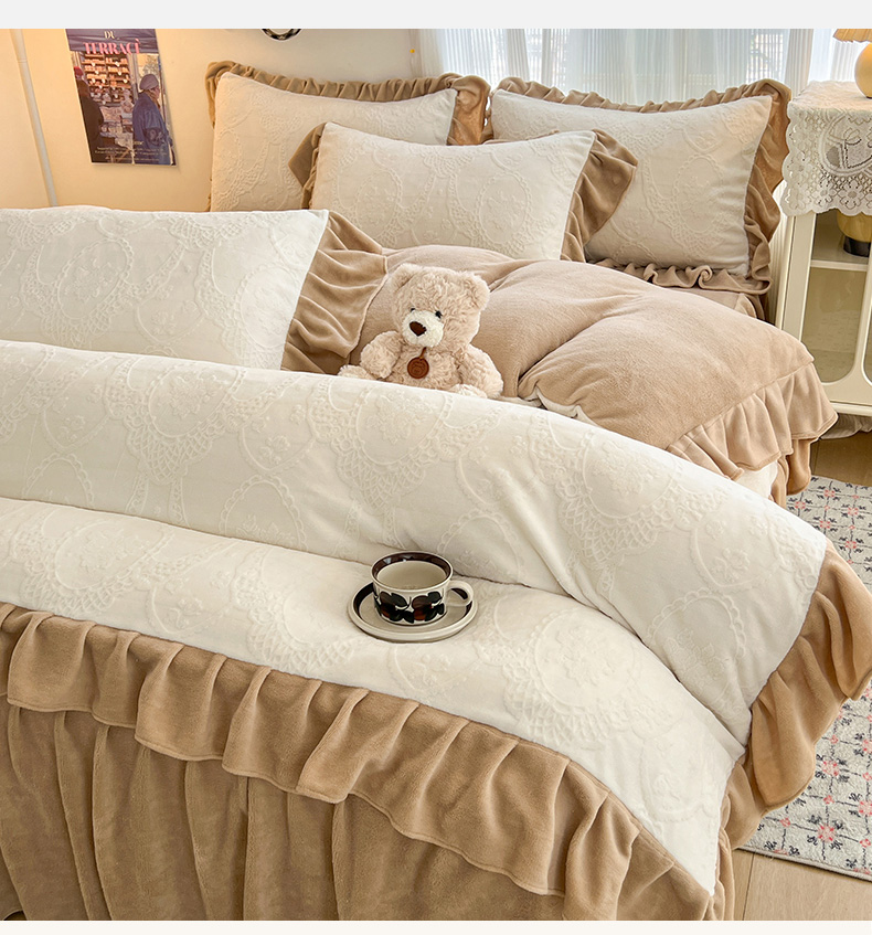 当前位置: 91家纺网 > 商品网购 > 床品套件 > 四件套 > 牛奶绒四件套 > 安哆啦家纺 2025新款法式雕花牛奶绒花边四件套 蕾丝花-白咖