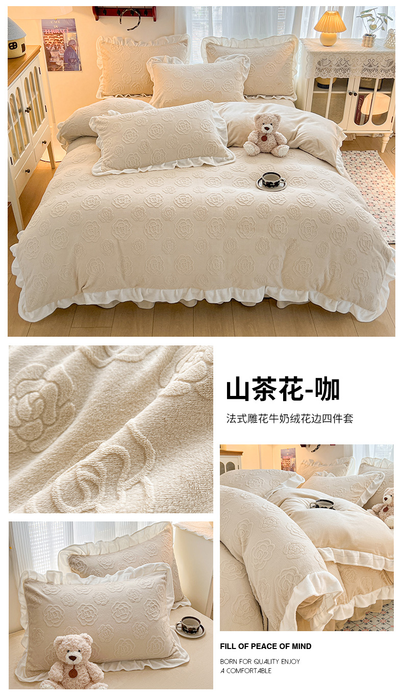 当前位置: 91家纺网 > 商品网购 > 床品套件 > 四件套 > 牛奶绒四件套 > 安哆啦家纺 2025新款法式雕花牛奶绒花边四件套 小花-粉