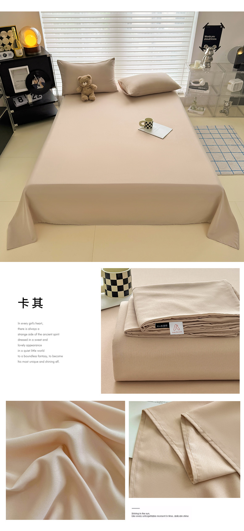 (总)十一家居 2025新款ins纯色系列亲肤水洗棉床笠,浅蓝,本白,茶咖,卡其,暖灰,深蓝,松绿,杏粉,烟灰,组合图