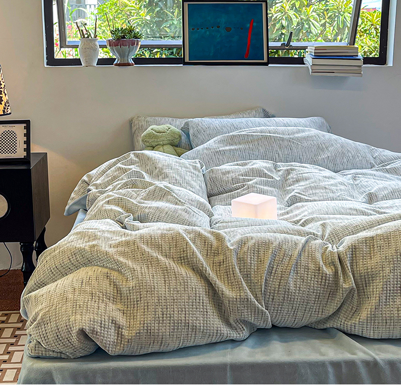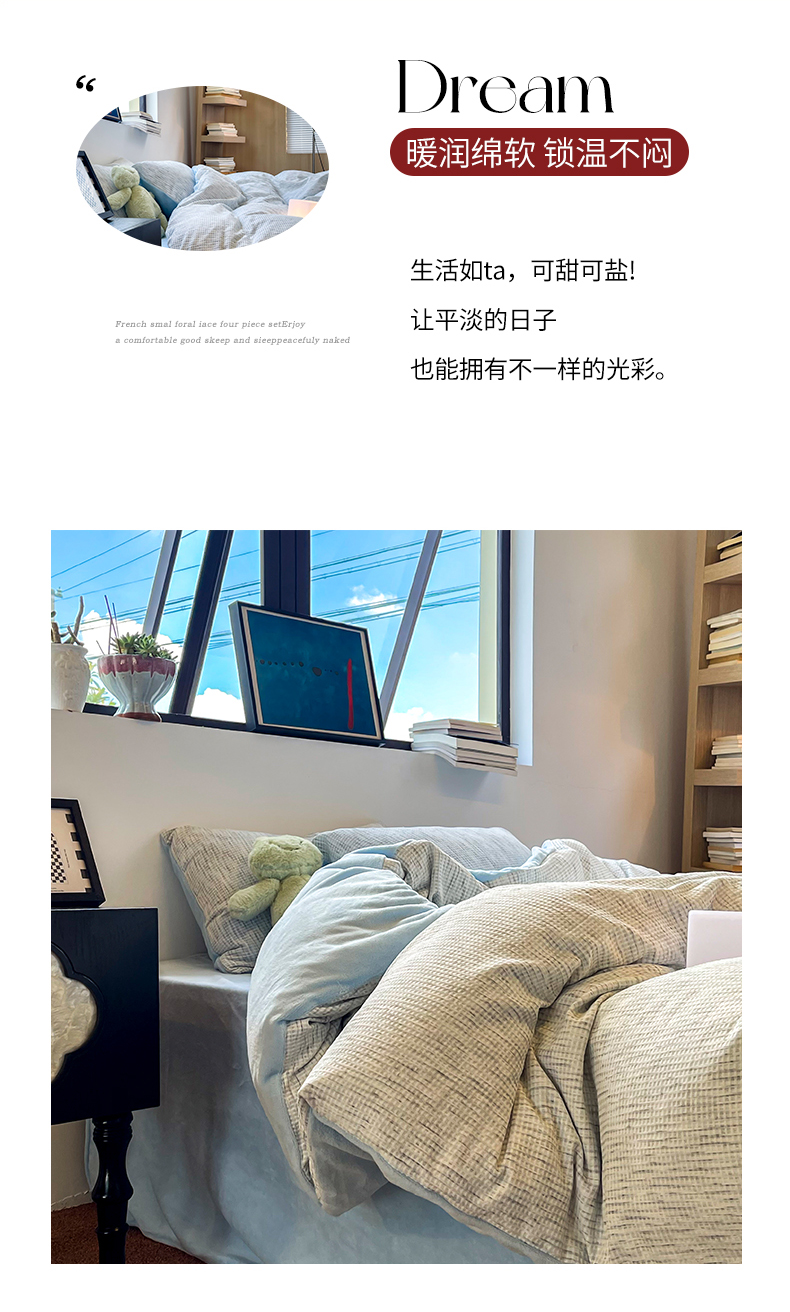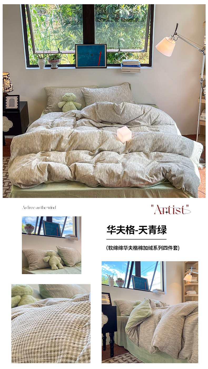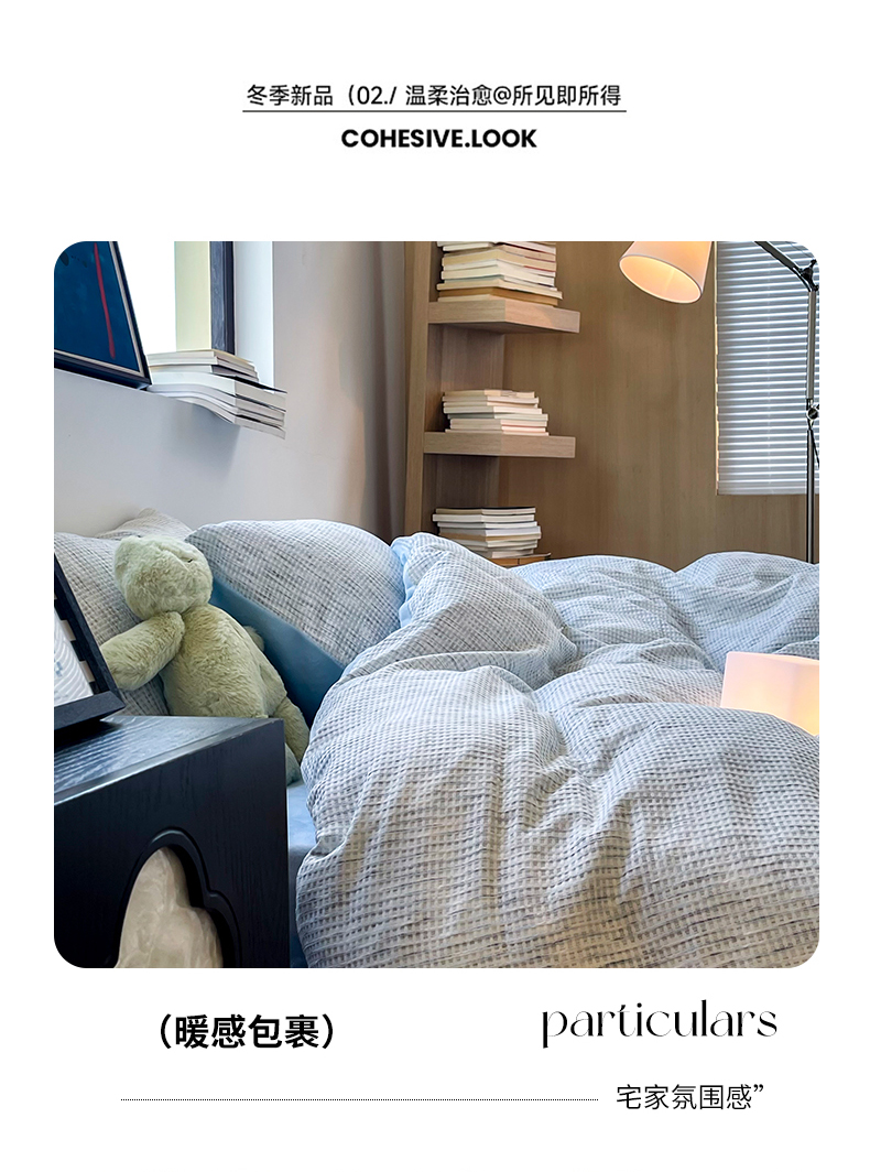 当前位置: 91家纺网 > 商品网购 > 床品套件 > 四件套 > 全棉普通四件套 > 捌月 2025冬季新款软绵绵华夫格棉加绒系列四件套 华夫格-海盐蓝