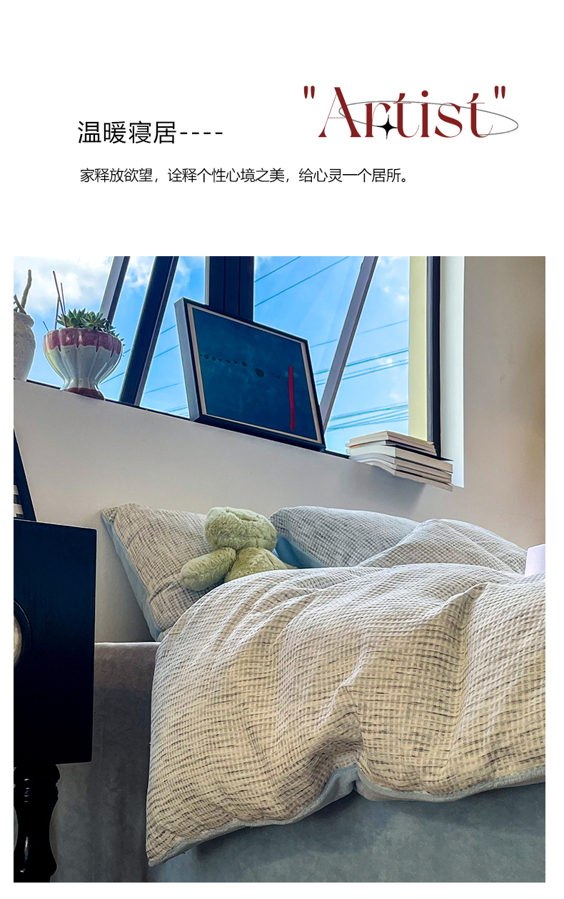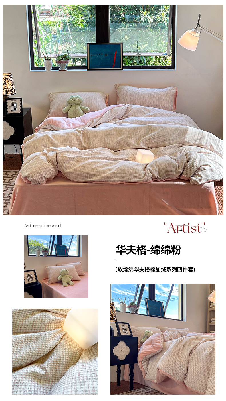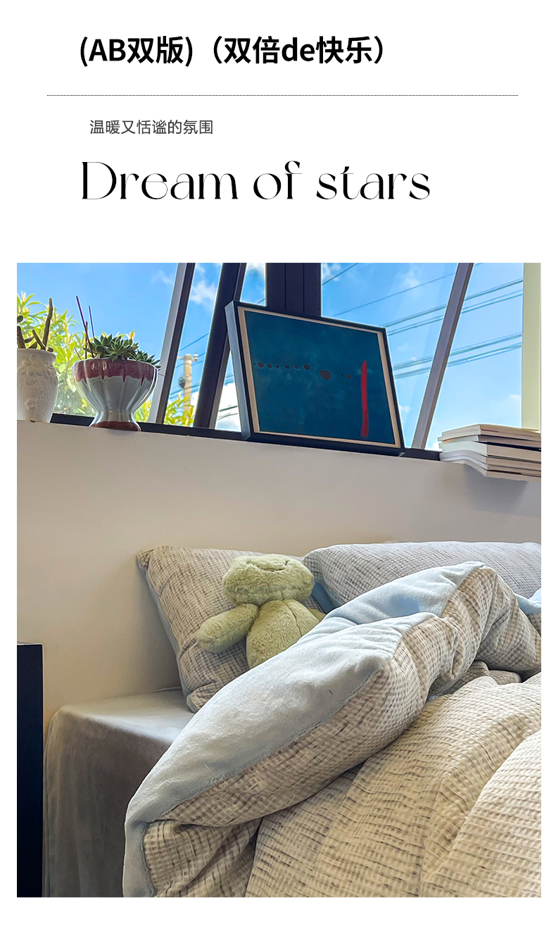当前位置: 91家纺网 > 商品网购 > 床品套件 > 四件套 > 全棉普通四件套 > 捌月 2025冬季新款软绵绵华夫格棉加绒系列四件套 华夫格-海盐蓝