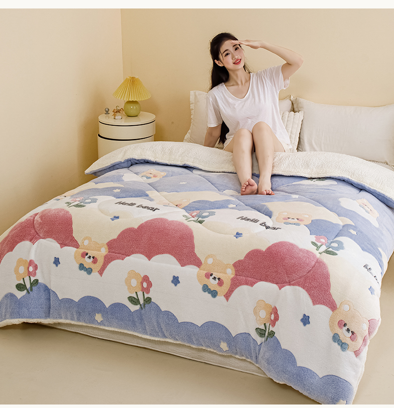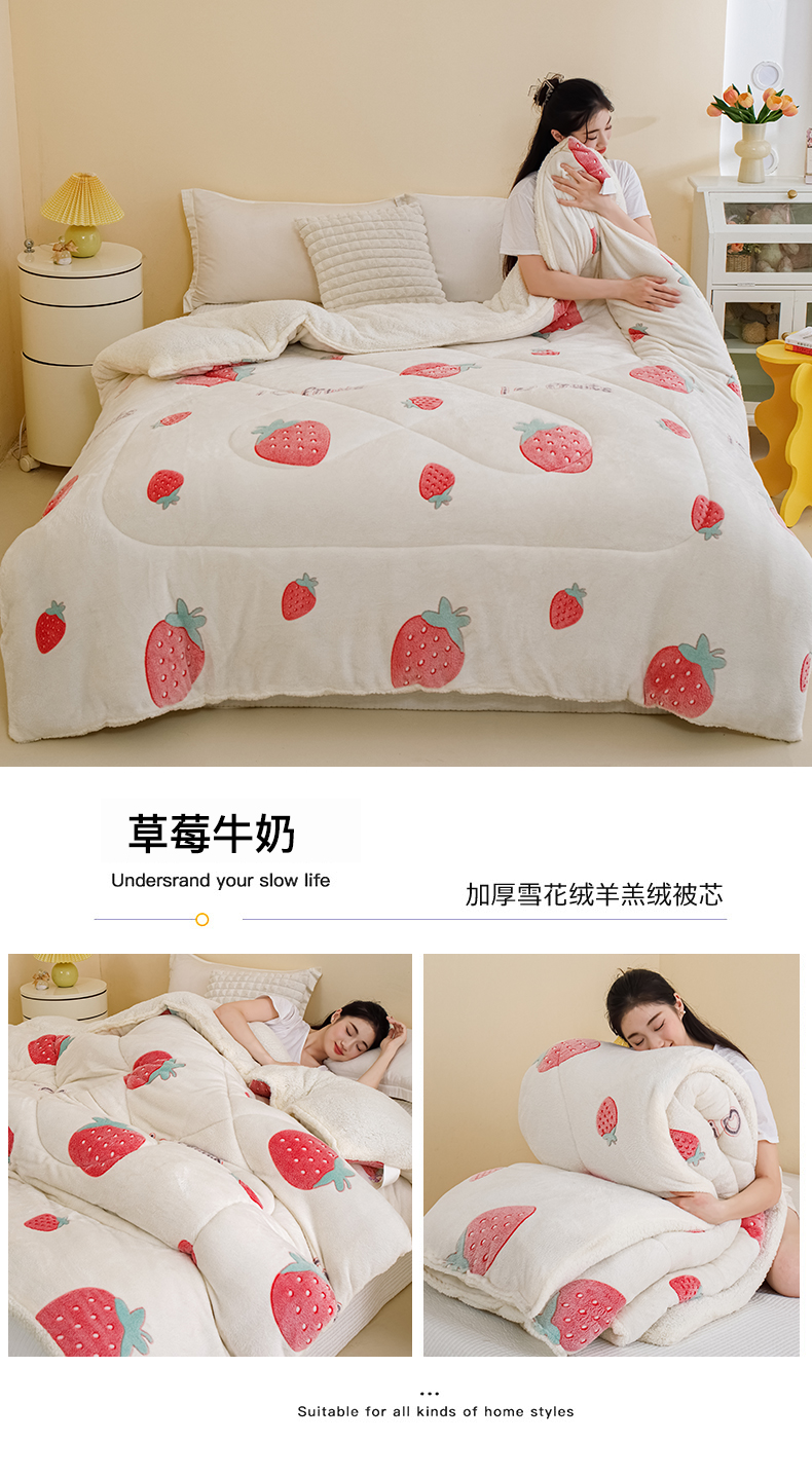 • 91家纺网 家纺一手货源 找家纺 (总)曼町家居 2025新款加厚升级款雪花绒印花冬被 被子被芯,草莓牛奶,花开花落,灰色星空,恐龙乐园,蓝色大耳狗,绅士派对,甜蜜小熊,熊猫宝贝