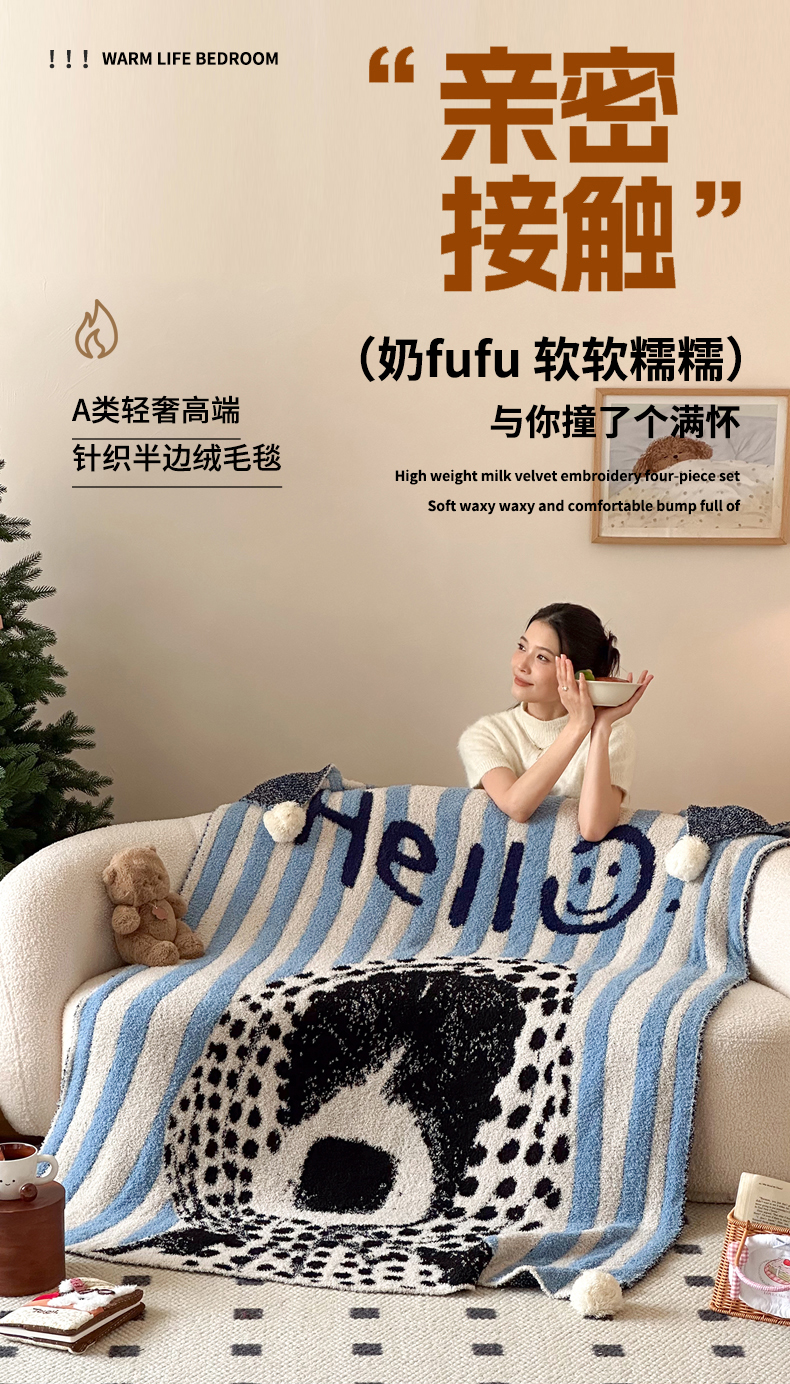 当前位置: 91家纺网 > 商品网购 > 毛毯休闲毯绒毯 > 毛毯 > Sweet dreams甜梦 2025新款轻奢高端毛球款半边绒针织毛毯 气质狗狗