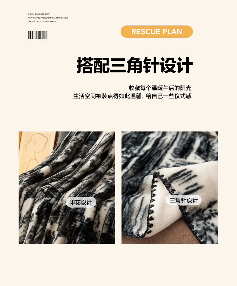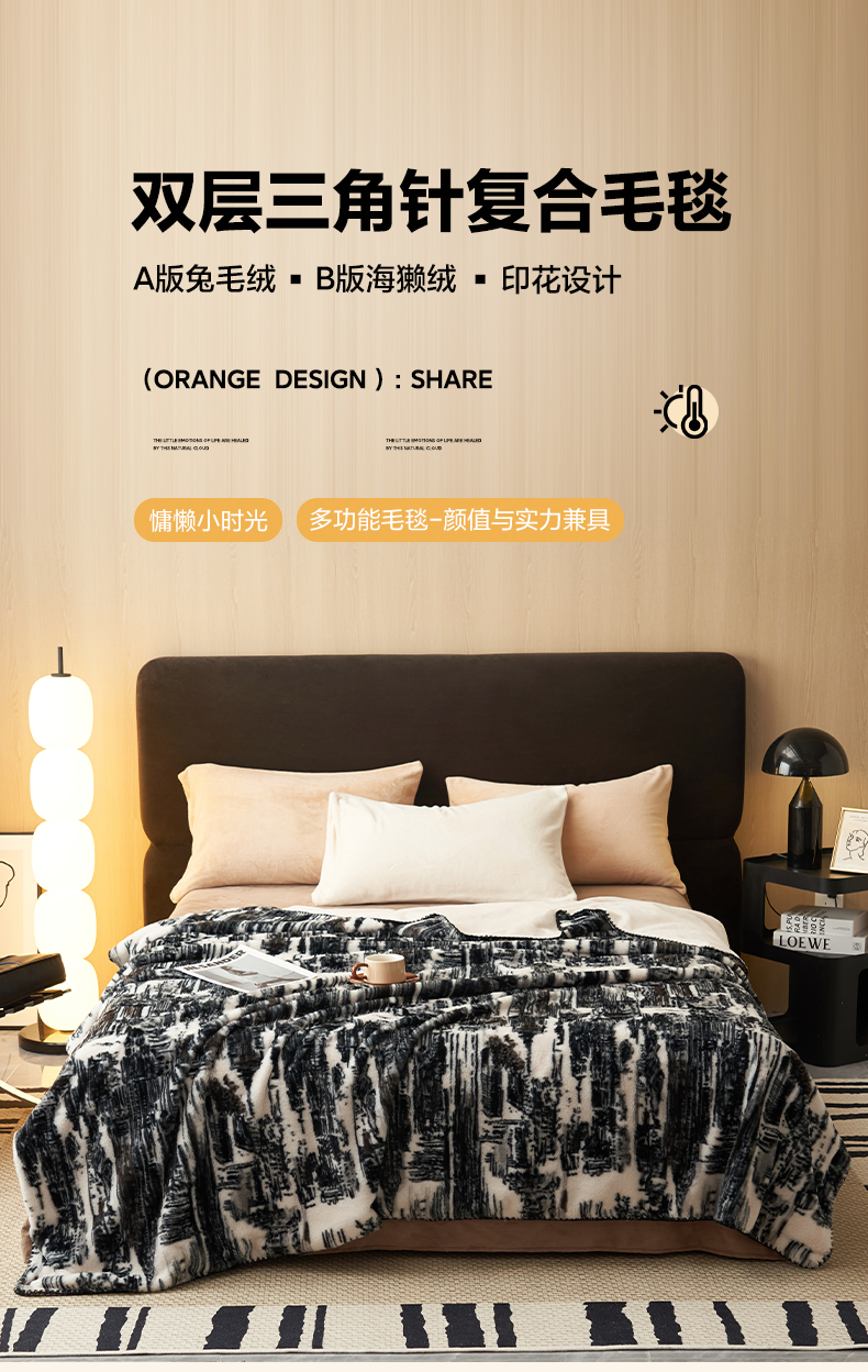 商品名称:晨曦家纺 2025新款兔毛绒海獭绒双层毛毯三角针复合毛毯 西城印象-灰