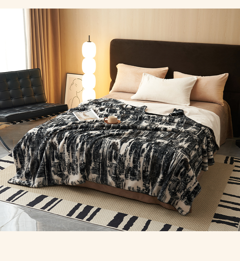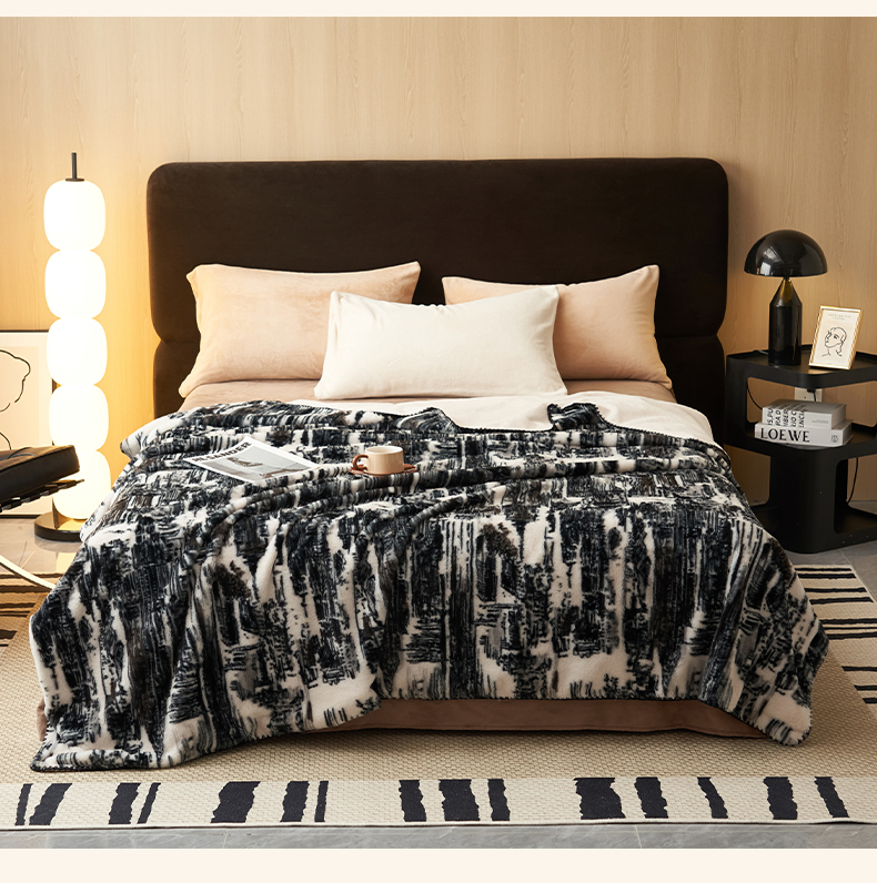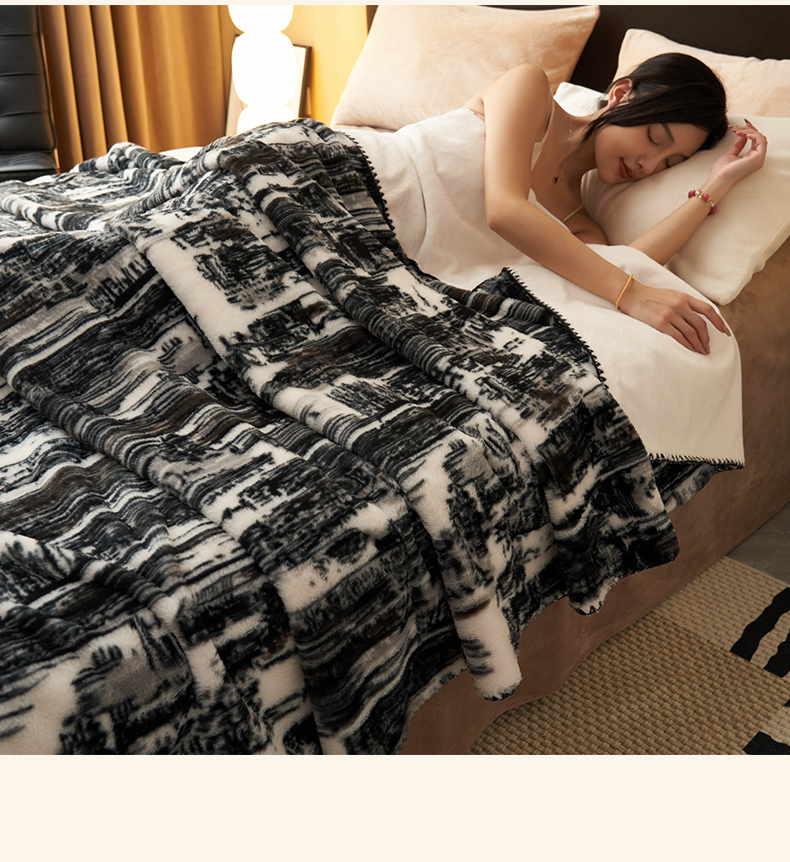 晨曦家纺 2025新款兔毛绒海獭绒双层毛毯三角针复合毛毯 西城印象-灰