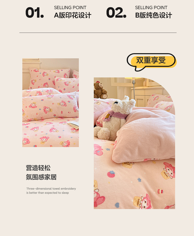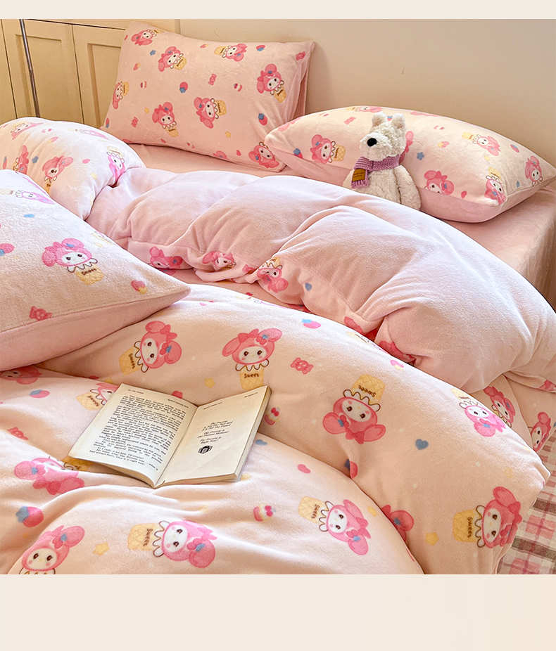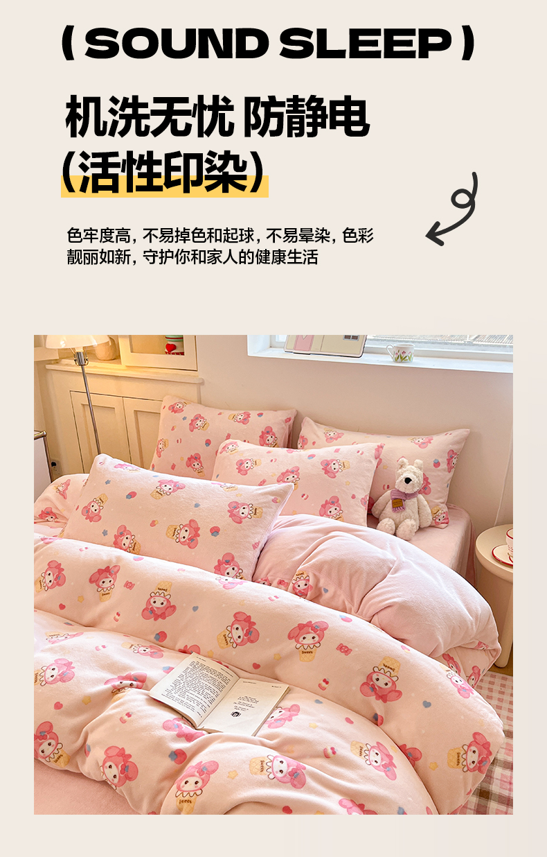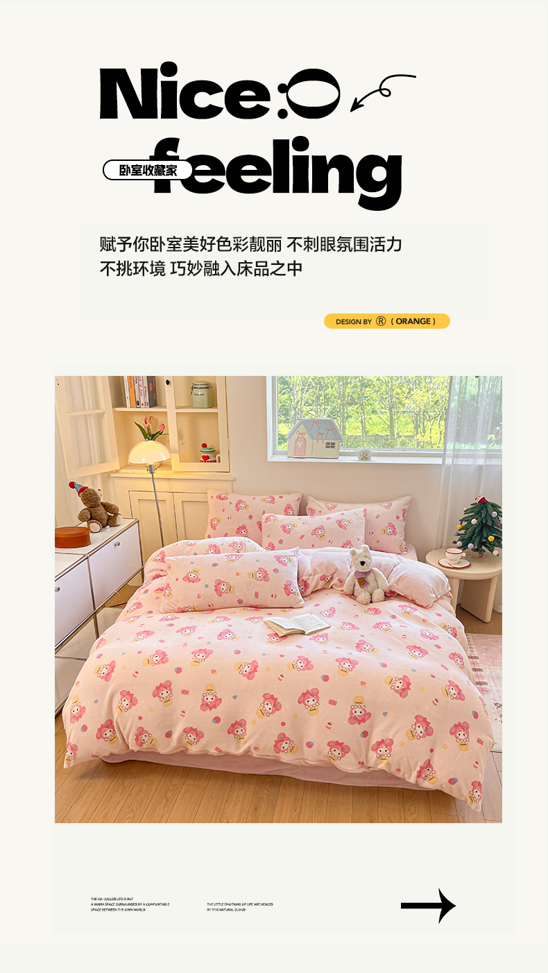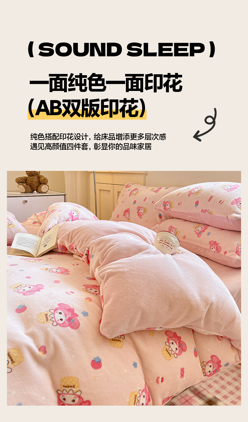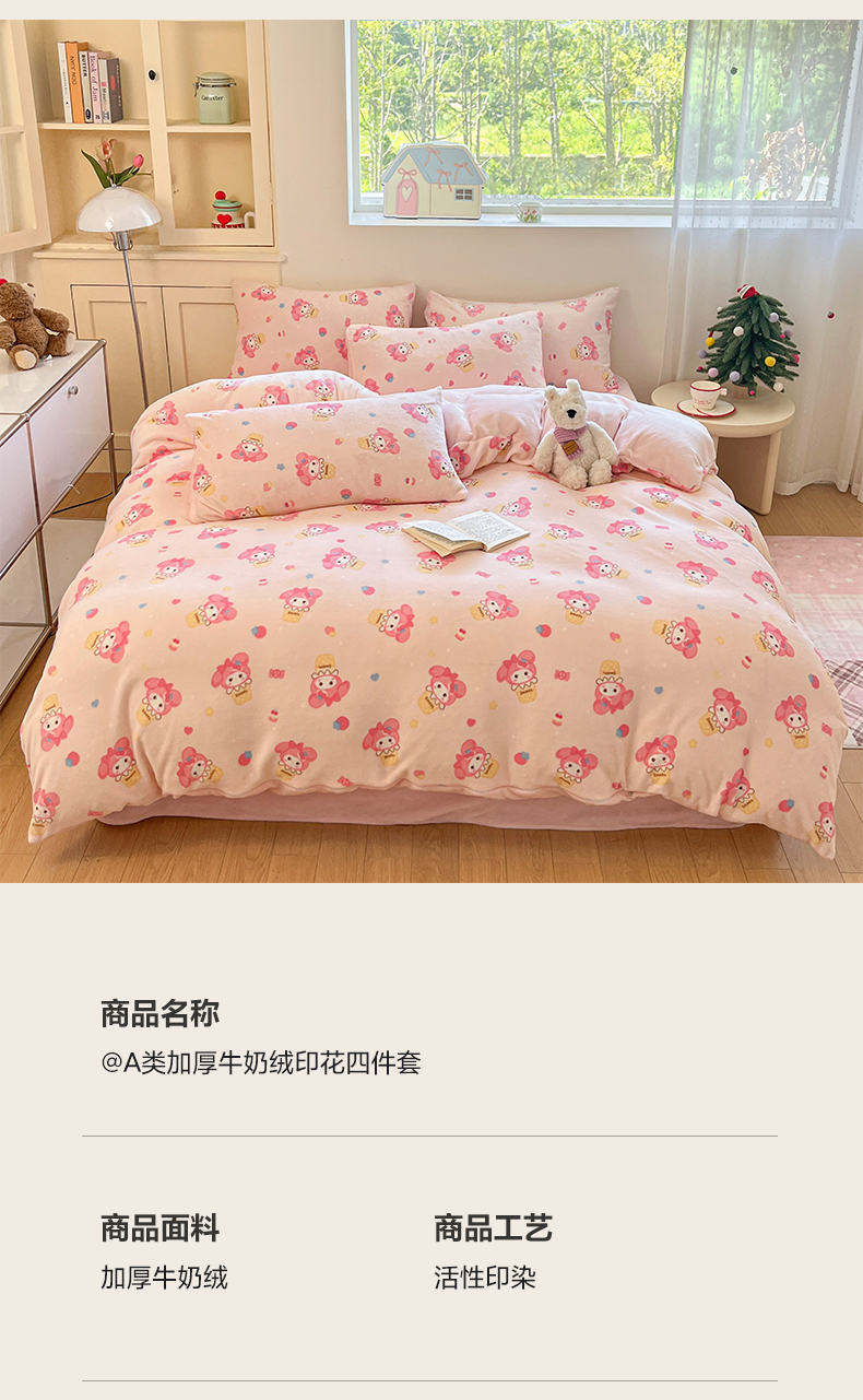 当前位置: 91家纺网 > 商品网购 > 床品套件 > 四件套 > 牛奶绒四件套 > 玉海棠家纺 2025新款A类加厚牛奶绒印花四件套 小美甜品屋