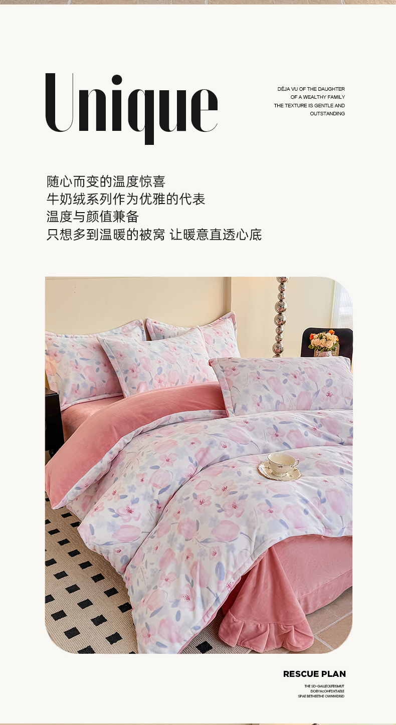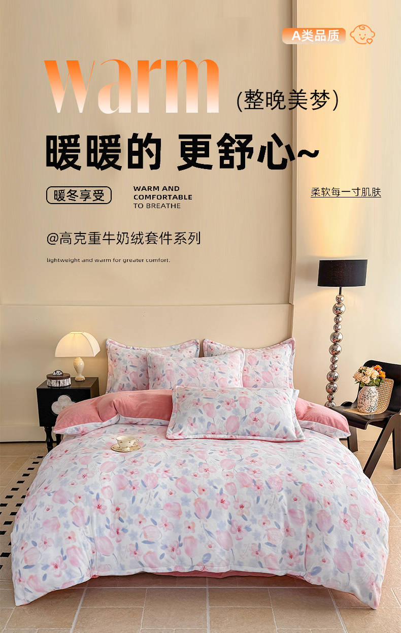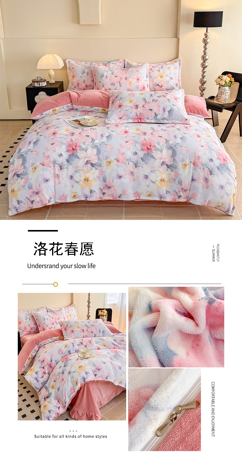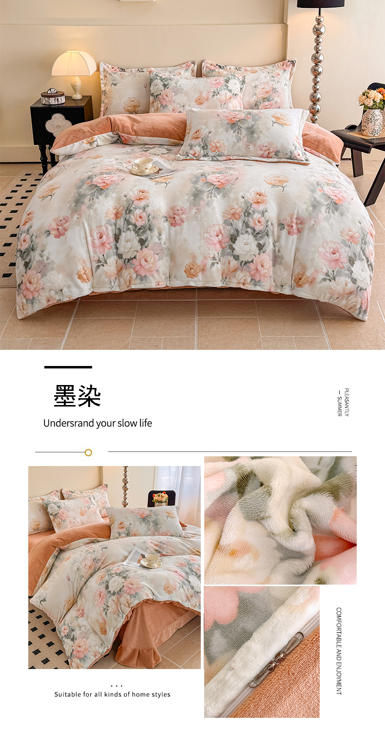 当前位置: 91家纺网 > 商品网购 > 床品套件 > 四件套 > 牛奶绒四件套 > 金盛纺 2025新款高克重牛奶绒印花系列四件套(可定制) 温雅