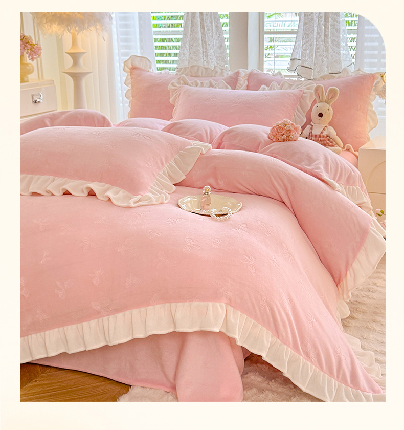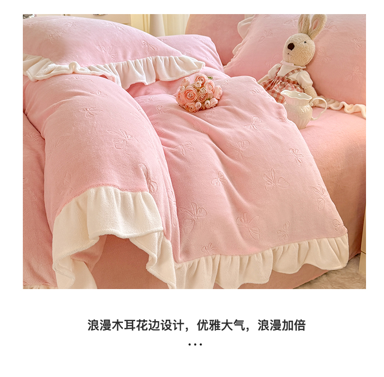 (总)逸尚阁 2025新款立体雕花牛奶绒花边四件套-蝴蝶结系列