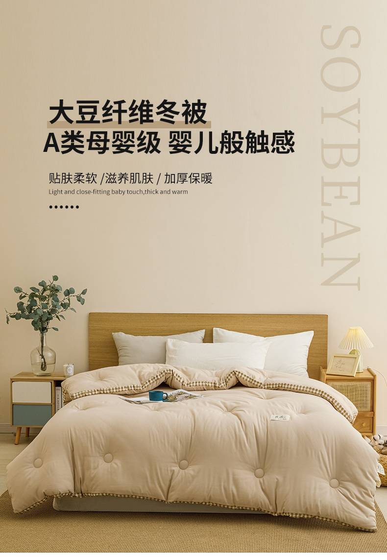 小叮当家纺仓储工厂店 2025新款无印风水洗磨毛立体大豆纤维被被子被芯 棋盘格-浅粉【A类母婴级 大豆纤维】